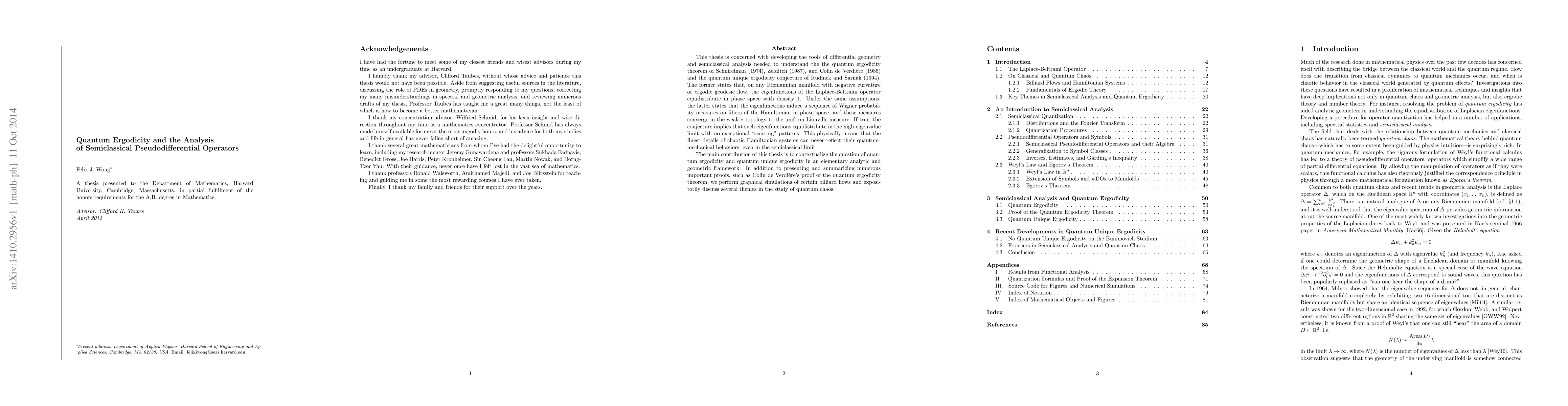 This paper develops tools from differential geometry and semiclassical analysis to explore the quantum ergodicity theorem and the quantum unique ergodicity conjecture, focusing on the equidistribution of eigenfunctions of the Laplace-Beltrami operator on negatively curved manifolds. It contextualizes these concepts and includes graphical simulations to illustrate chaotic Hamiltonian systems' quantum behavior.
