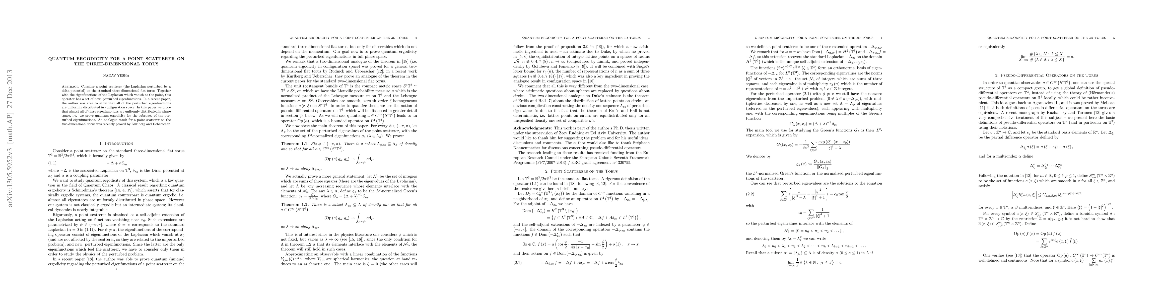 Consider a point scatterer (the Laplacian perturbed by a delta-potential) on the standard three-dimensional flat torus. Together with the eigenfunctions of the Laplacian which vanish at the point, this operator has a set of new, perturbed eigenfunctions. In a recent paper, the author was able to show that all of the perturbed eigenfunctions are uniformly distributed in configuration space. In this paper we prove that almost all of these eigenfunctions are uniformly distributed in phase space, i.e. we prove quantum ergodicity for the subspace of the perturbed eigenfunctions. An analogue result for a point scatterer on the two-dimensional torus was recently proved by Kurlberg and Uebersch\"ar.