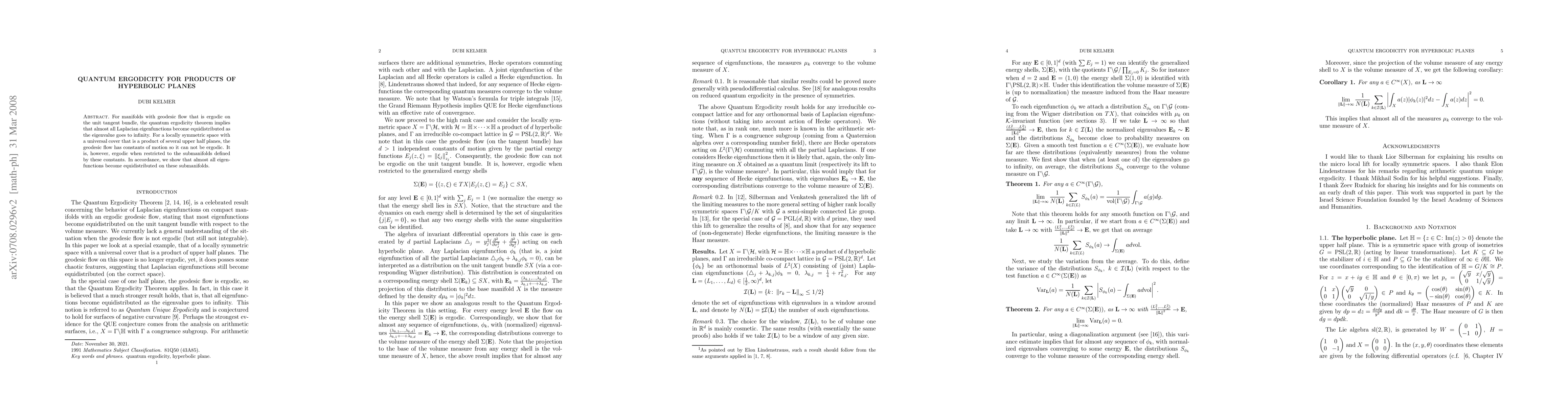 For manifolds with geodesic flow that is ergodic on the unit tangent bundle, the quantum ergodicity theorem implies that almost all Laplacian eigenfunctions become equidistributed as the eigenvalue goes to infinity. For a locally symmetric space with a universal cover that is a product of several upper half planes, the geodesic flow has constants of motion so it can not be ergodic. It is, however, ergodic when restricted to the submanifolds defined by these constants. In accordance, we show that almost all eigenfunctions become equidistributed on these submanifolds.