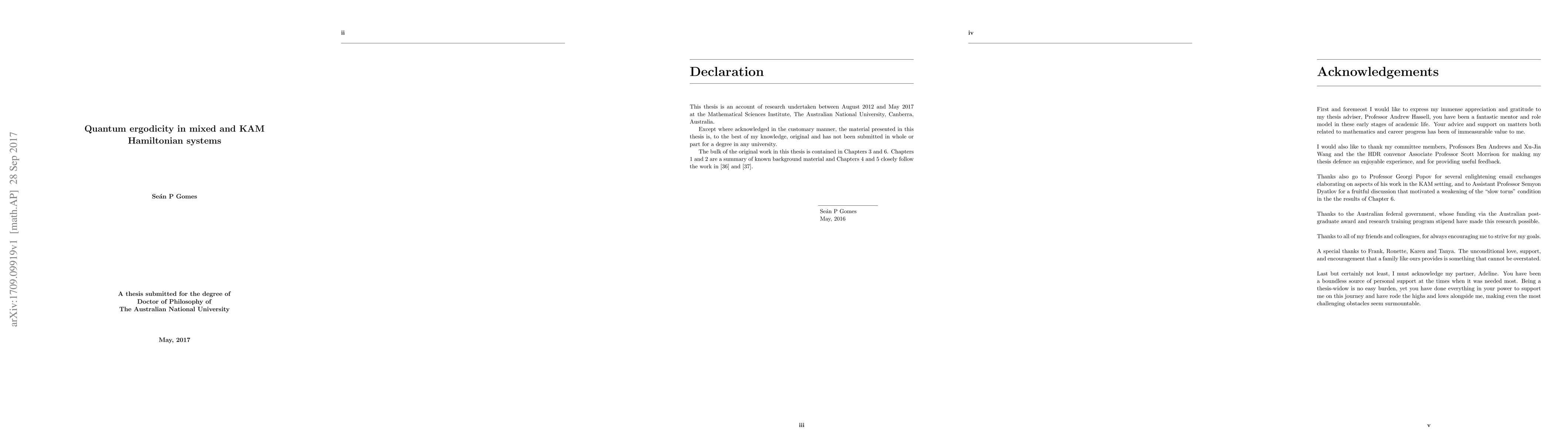In this thesis, we investigate quantum ergodicity for two classes of Hamiltonian systems satisfying intermediate dynamical hypotheses between the well understood extremes of ergodic flow and quantum completely integrable flow. These two classes are mixed Hamiltonian systems and KAM Hamiltonian systems. Hamiltonian systems with mixed phase space decompose into finitely many invariant subsets, only some of which are of ergodic character. It has been conjectured by Percival that the eigenfunctions of the quantisation of this system decompose into associated families of analogous character. The first project in this thesis proves a weak form of this conjecture for a class of dynamical billiards, namely the mushroom billiards of Bunimovich for a full measure subset of a shape parameter $t\in (0,2]$. KAM Hamiltonian systems arise as perturbations of completely integrable Hamiltonian systems. The dynamics of these systems are well understood and have near-integrable character. The classical-quantum correspondence suggests that the quantisation of KAM systems will not have quantum ergodic character. The second project in this thesis proves an initial negative quantum ergodicity result for a class of positive Gevrey perturbations of a Gevrey Hamiltonian that satisfy a mild "slow torus" condition.