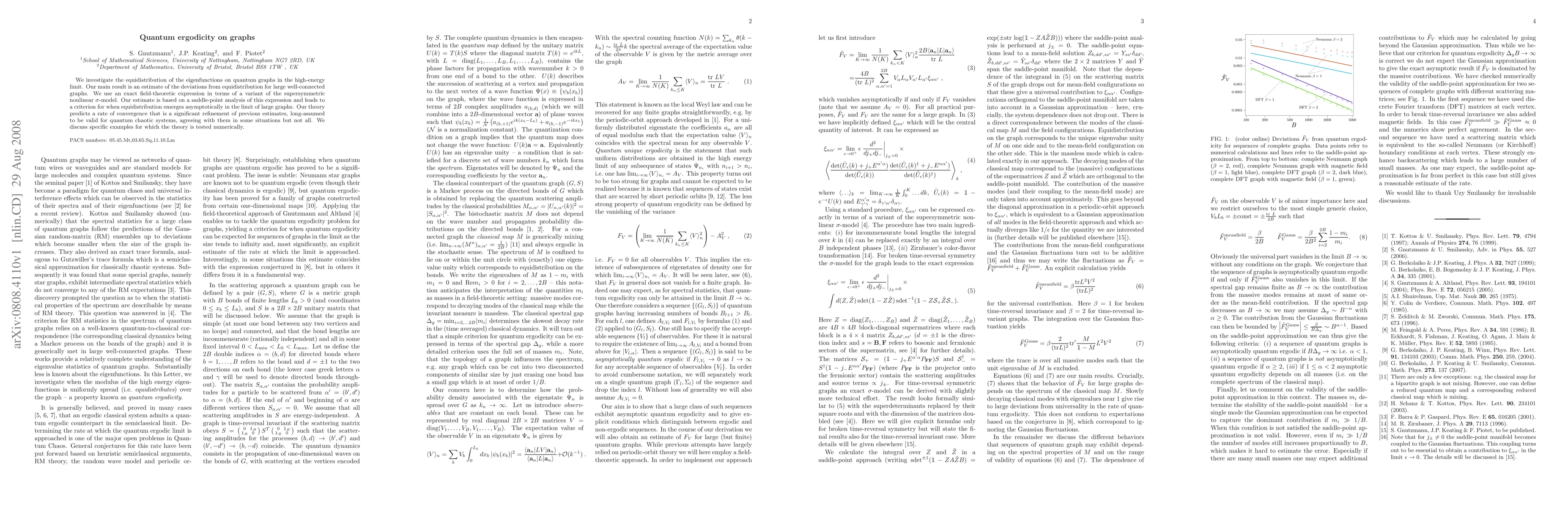We investigate the equidistribution of the eigenfunctions on quantum graphs in the high-energy limit. Our main result is an estimate of the deviations from equidistribution for large well-connected graphs. We use an exact field-theoretic expression in terms of a variant of the supersymmetric nonlinear sigma-model. Our estimate is based on a saddle-point analysis of this expression and leads to a criterion for when equidistribution emerges asymptotically in the limit of large graphs. Our theory predicts a rate of convergence that is a significant refinement of previous estimates, long-assumed to be valid for quantum chaotic systems, agreeing with them in some situations but not all. We discuss specific examples for which the theory is tested numerically.
