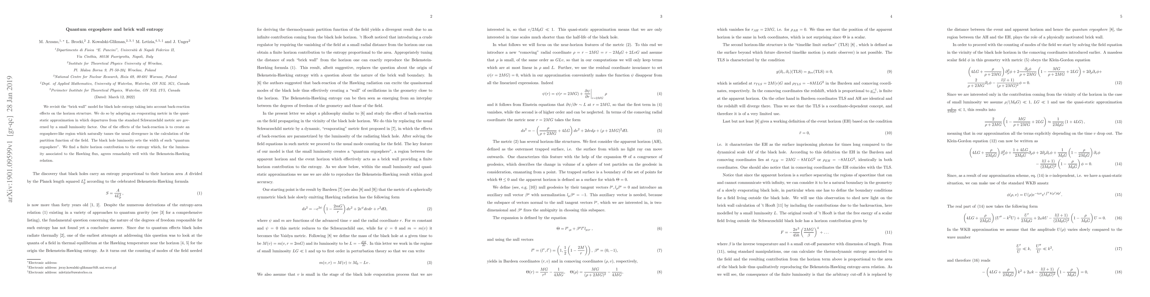 This paper revisits the "brick wall" model for black hole entropy, incorporating back-reaction effects that modify the horizon structure. It introduces a quantum ergosphere-like region due to black hole luminosity, which resolves the usual divergence in entropy calculations and aligns well with the Bekenstein-Hawking entropy formula.