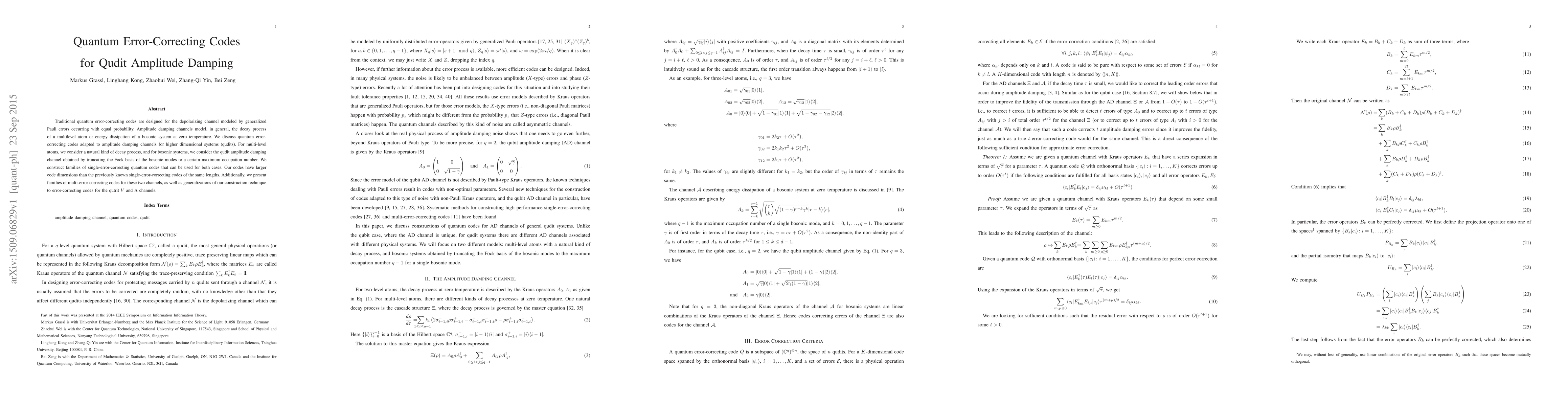 This paper develops quantum error-correcting codes for qudits subjected to amplitude damping channels, which model decay processes in multi-level atoms and truncated bosonic systems. It presents single-error-correcting codes with larger dimensions and multi-error correcting codes, extending the technique to $V$ and $\Lambda$ channels for qutrits.