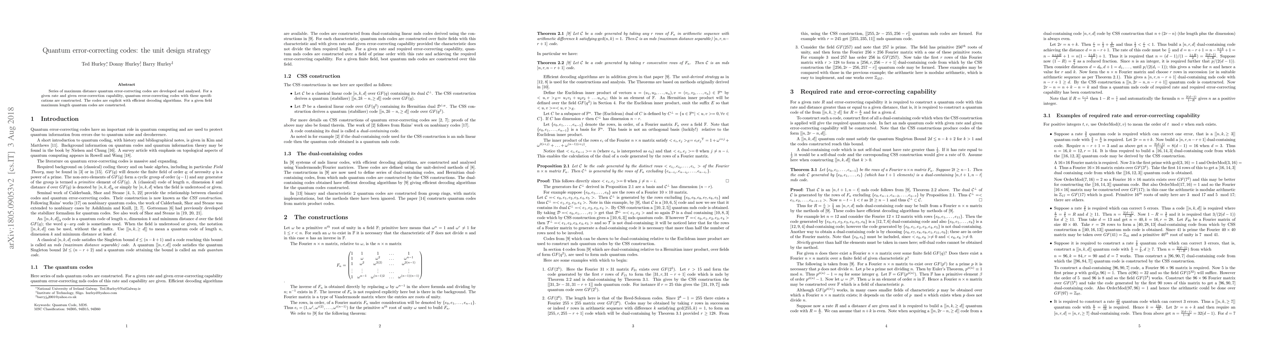 Summary: This paper develops maximum distance quantum error-correcting codes using a unit-derived strategy, providing explicit constructions with efficient decoding algorithms for specified rates and error-correction capabilities, and constructing maximum length quantum codes for given fields.