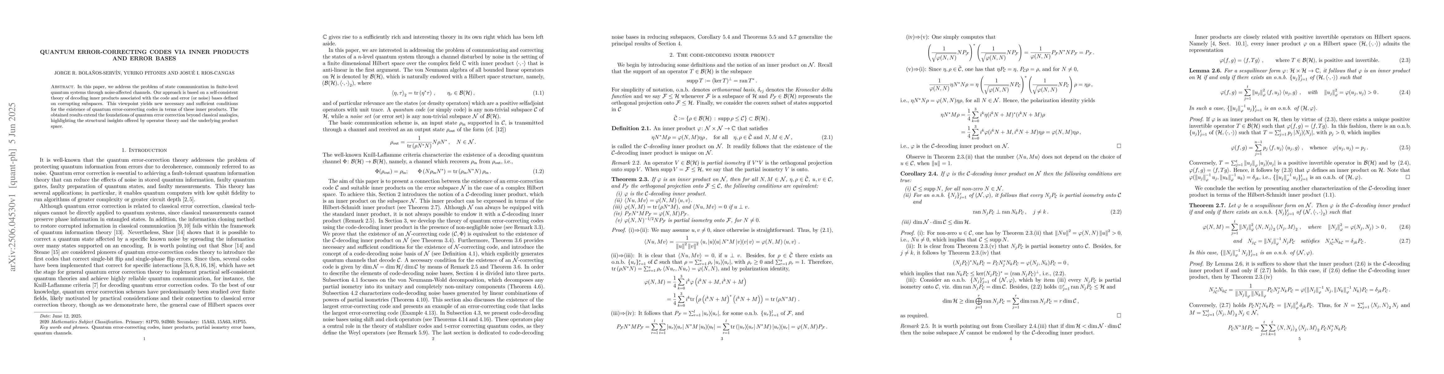 The paper presents a novel theoretical framework for quantum error correction based on inner products and error bases, providing conditions for the existence of quantum error-correcting codes.