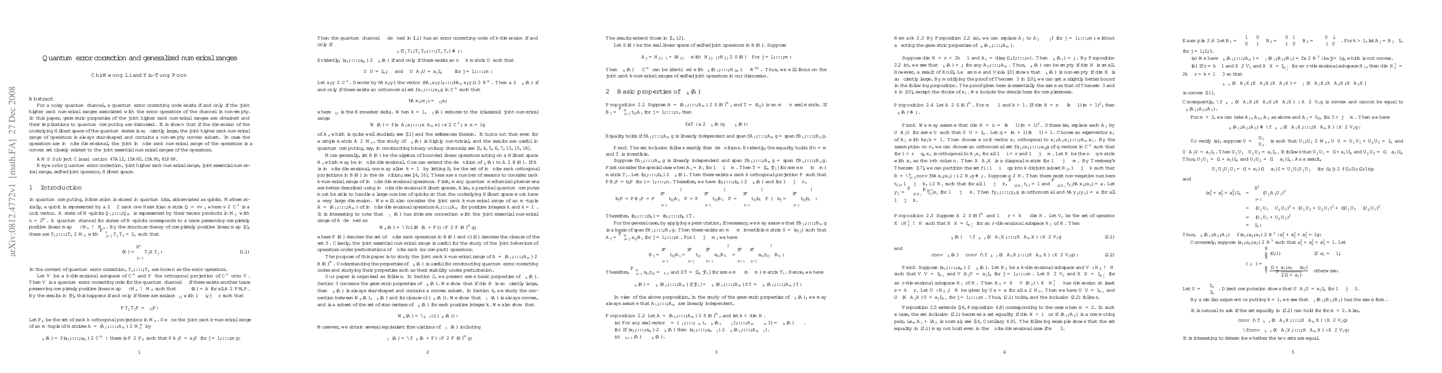 For a noisy quantum channel, a quantum error correcting code exists if and only if the joint higher rank numerical ranges associated with the error operators of the channel is non-empty. In this paper, geometric properties of the joint higher rank numerical ranges are obtained and their implications to quantum computing are discussed. It is shown that if the dimension of the underlying Hilbert space of the quantum states is sufficiently large, the joint higher rank numerical range of operators is always star-shaped and contains a non-empty convex subset. In case the operators are infinite dimensional, the joint infinite rank numerical range of the operators is a convex set closely related to the joint essential numerical ranges of the operators.