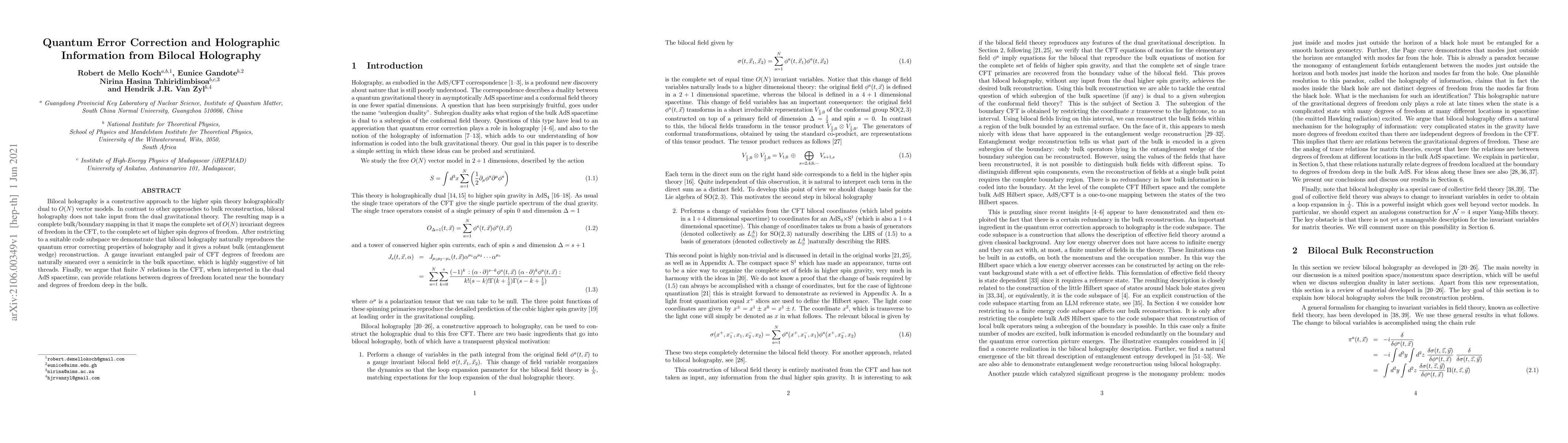 The paper presents a bilocal holographic mapping that provides a complete bulk/boundary correspondence, demonstrating quantum error correction and entanglement wedge reconstruction.