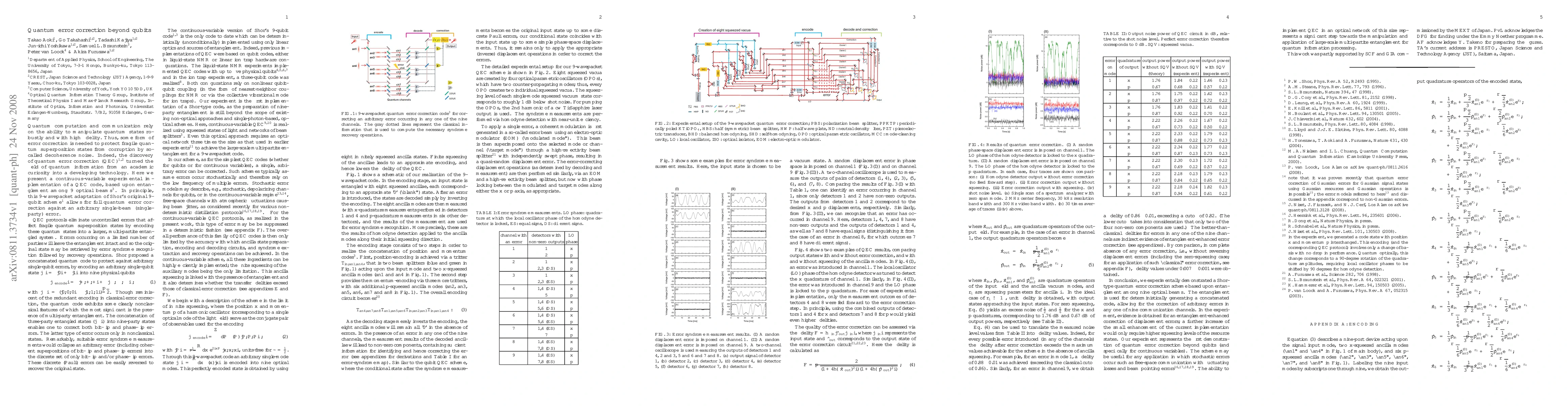 Quantum computation and communication rely on the ability to manipulate quantum states robustly and with high fidelity. Thus, some form of error correction is needed to protect fragile quantum superposition states from corruption by so-called decoherence noise. Indeed, the discovery of quantum error correction (QEC) turned the field of quantum information from an academic curiosity into a developing technology. Here we present a continuous-variable experimental implementation of a QEC code, based upon entanglement among 9 optical beams. In principle, this 9-wavepacket adaptation of Shor's original 9-qubit scheme allows for full quantum error correction against an arbitrary single-beam (single-party) error.