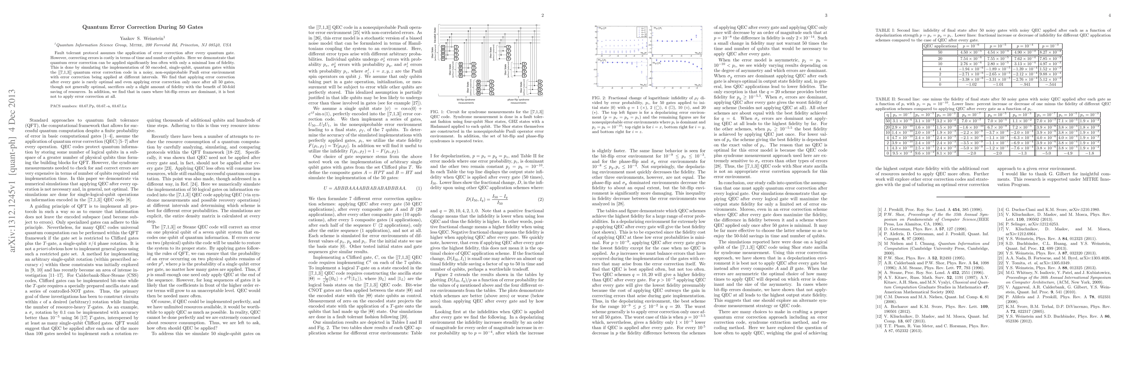 Fault tolerant protocol assumes the application of error correction after every quantum gate. However, correcting errors is costly in terms of time and number of qubits. Here we demonstrate that quantum error correction can be applied significantly less often with only a minimal loss of fidelity. This is done by simulating the implementation of 50 encoded, single-qubit, quantum gates within the [[7,1,3]] quantum error correction code in a noisy, non-equiprobable Pauli error environment with error correction being applied at different intervals. We find that applying error correction after every gate is rarely optimal and even applying error correction only once after all 50 gates, though not generally optimal, sacrifices only a slight amount of fidelity with the benefit of 50-fold saving of resources. In addition, we find that in cases where bit-flip errors are dominant, it is best not to apply error correction at all.