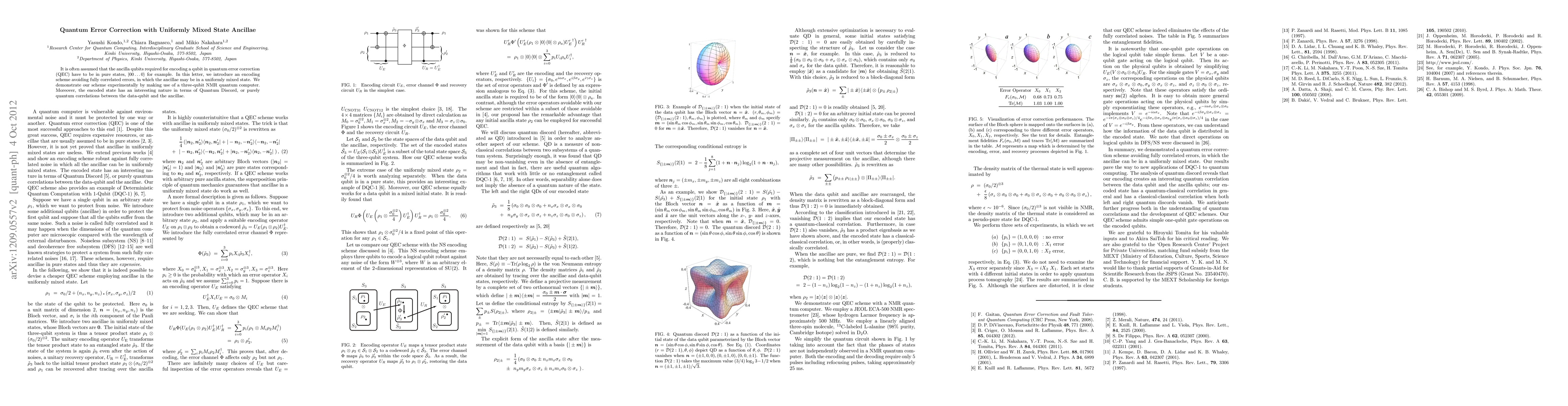 This paper proposes a novel quantum error correction scheme where ancilla qubits are in uniformly mixed states instead of pure states, demonstrated experimentally using a three-qubit NMR quantum computer. The scheme also reveals unique quantum correlations, specifically Quantum Discord, between the data qubit and the ancillae.