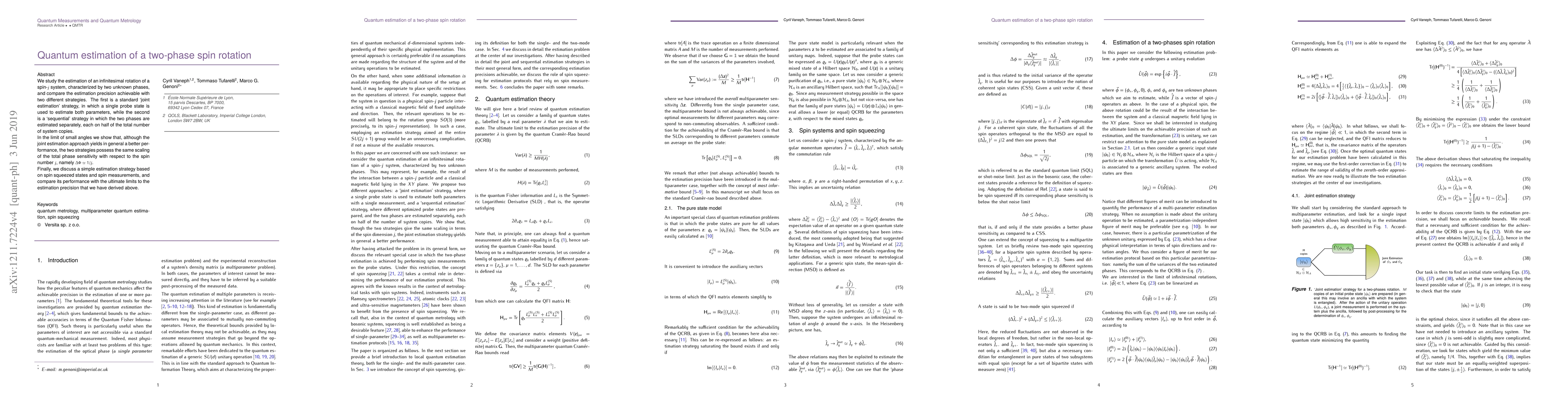 Researchers compare two strategies for estimating a spin rotation: joint estimation and sequential estimation. Both methods achieve the same scaling of precision with increasing system copies, with limits set by 1/j.