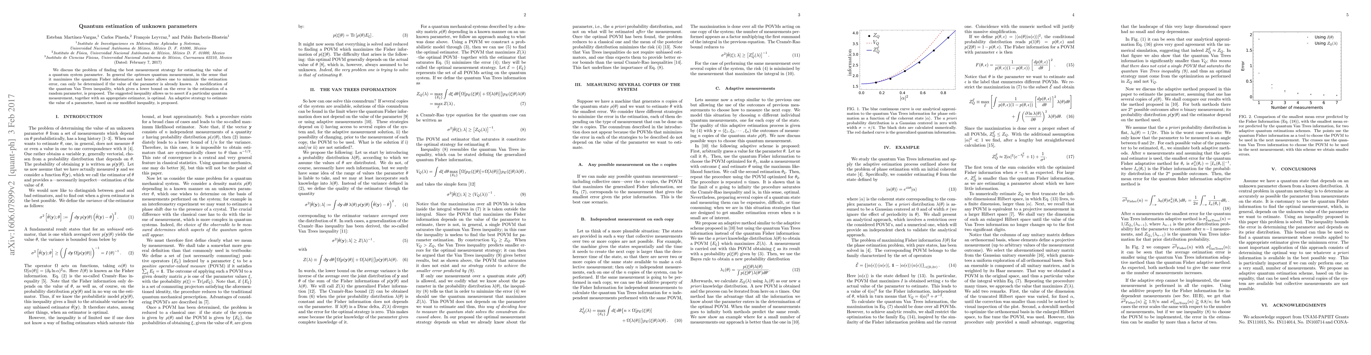 We discuss the problem of finding the best measurement strategy for estimating the value of a quantum system parameter. In general the optimum quantum measurement, in the sense that it maximizes the quantum Fisher information and hence allows one to minimize the estimation error, can only be determined if the value of the parameter is already known. A modification of the quantum Van Trees inequality, which gives a lower bound on the error in the estimation of a random parameter, is proposed. The suggested inequality allows us to assert if a particular quantum measurement, together with an appropriate estimator, is optimal. An adaptive strategy to estimate the value of a parameter, based on our modified inequality, is proposed.