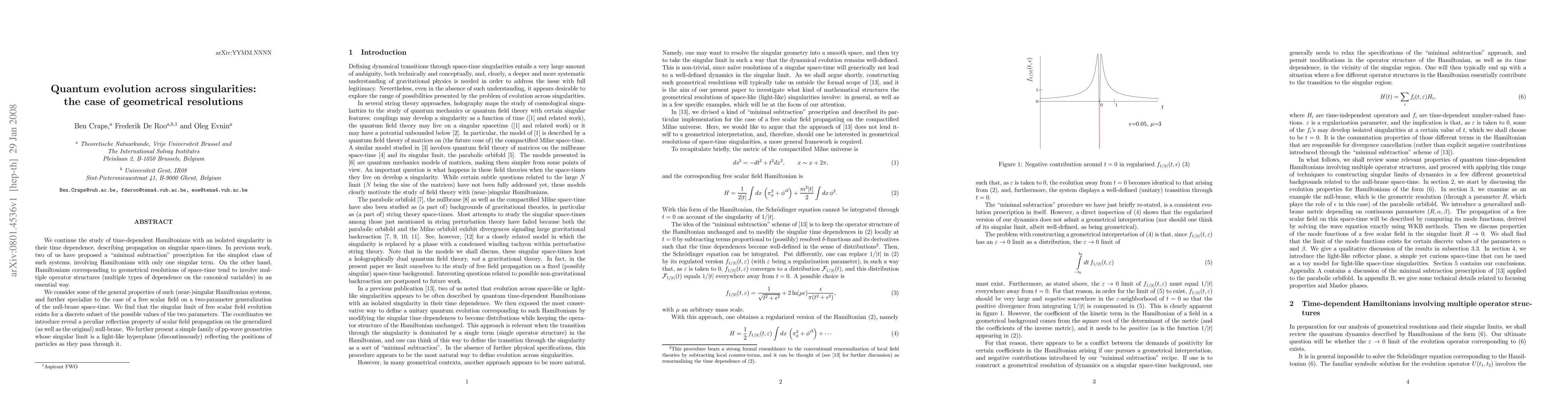 We continue the study of time-dependent Hamiltonians with an isolated singularity in their time dependence, describing propagation on singular space-times. In previous work, two of us have proposed a "minimal subtraction" prescription for the simplest class of such systems, involving Hamiltonians with only one singular term. On the other hand, Hamiltonians corresponding to geometrical resolutions of space-time tend to involve multiple operator structures (multiple types of dependence on the canonical variables) in an essential way. We consider some of the general properties of such (near-)singular Hamiltonian systems, and further specialize to the case of a free scalar field on a two-parameter generalization of the null-brane space-time. We find that the singular limit of free scalar field evolution exists for a discrete subset of the possible values of the two parameters. The coordinates we introduce reveal a peculiar reflection property of scalar field propagation on the generalized (as well as the original) null-brane. We further present a simple family of pp-wave geometries whose singular limit is a light-like hyperplane (discontinuously) reflecting the positions of particles as they pass through it.