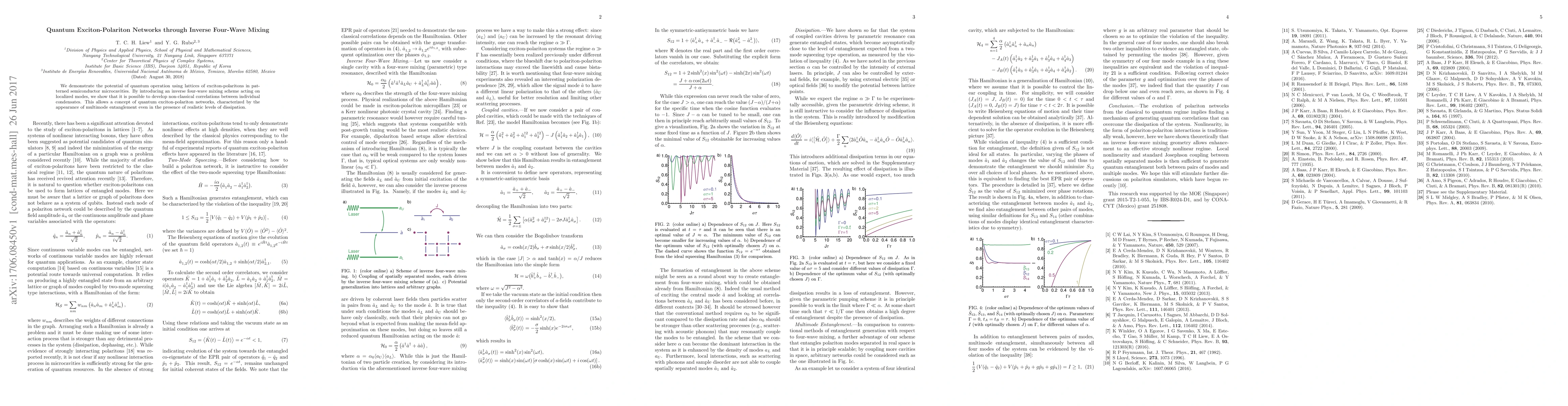 This paper demonstrates the potential for quantum operations using exciton-polariton networks in patterned semiconductor microcavities, showing that inverse four-wave mixing can create non-classical correlations and multimode entanglement between condensates despite realistic levels of dissipation.