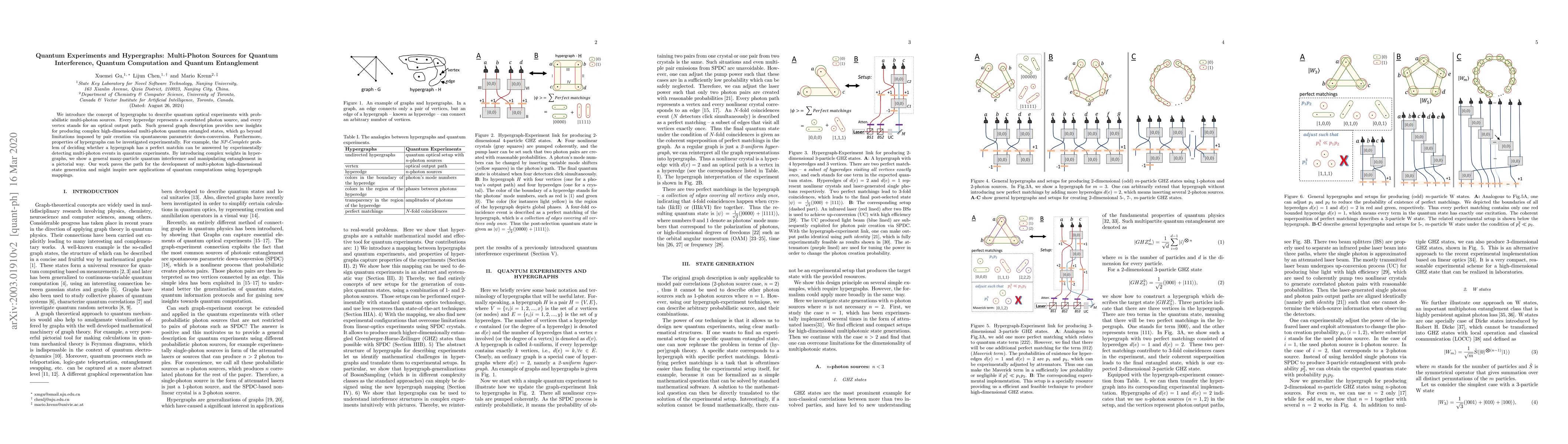 This paper introduces hypergraphs to describe quantum optical experiments with multi-photon sources, enabling complex high-dimensional quantum entangled states beyond traditional pair creation methods. It also proposes experimental methods to investigate hypergraph properties, such as detecting multi-photon events to solve NP-Complete problems, and suggests potential applications in quantum computation.