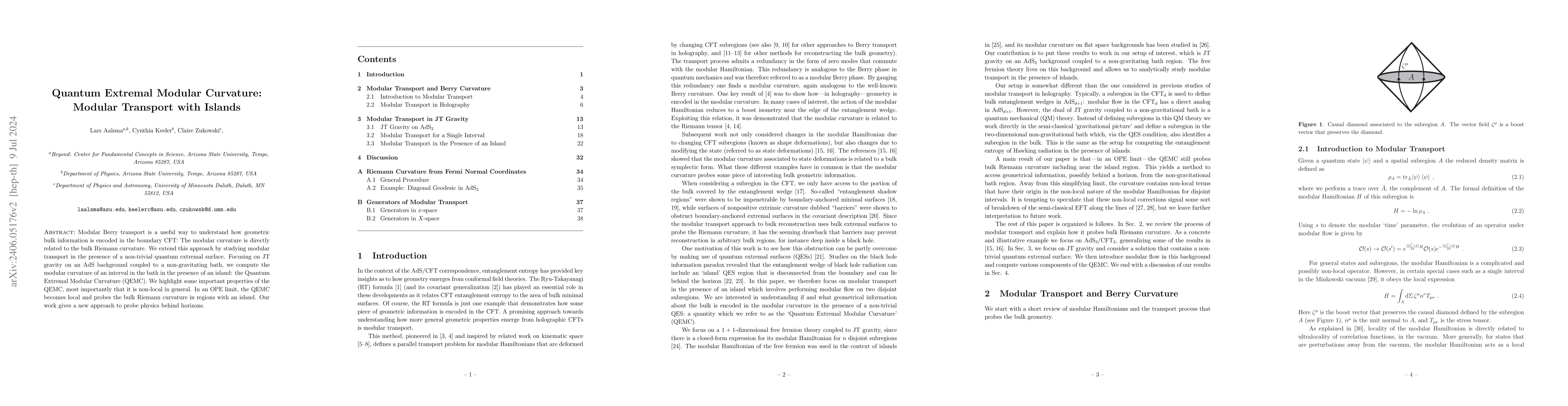 Modular Berry transport is a useful way to understand how geometric bulk information is encoded in the boundary CFT: The modular curvature is directly related to the bulk Riemann curvature. We extend this approach by studying modular transport in the presence of a non-trivial quantum extremal surface. Focusing on JT gravity on an AdS background coupled to a non-gravitating bath, we compute the modular curvature of an interval in the bath in the presence of an island: the Quantum Extremal Modular Curvature (QEMC). We highlight some important properties of the QEMC, most importantly that it is non-local in general. In an OPE limit, the QEMC becomes local and probes the bulk Riemann curvature in regions behind a horizon. Our work gives a new approach to probe physics behind horizons.