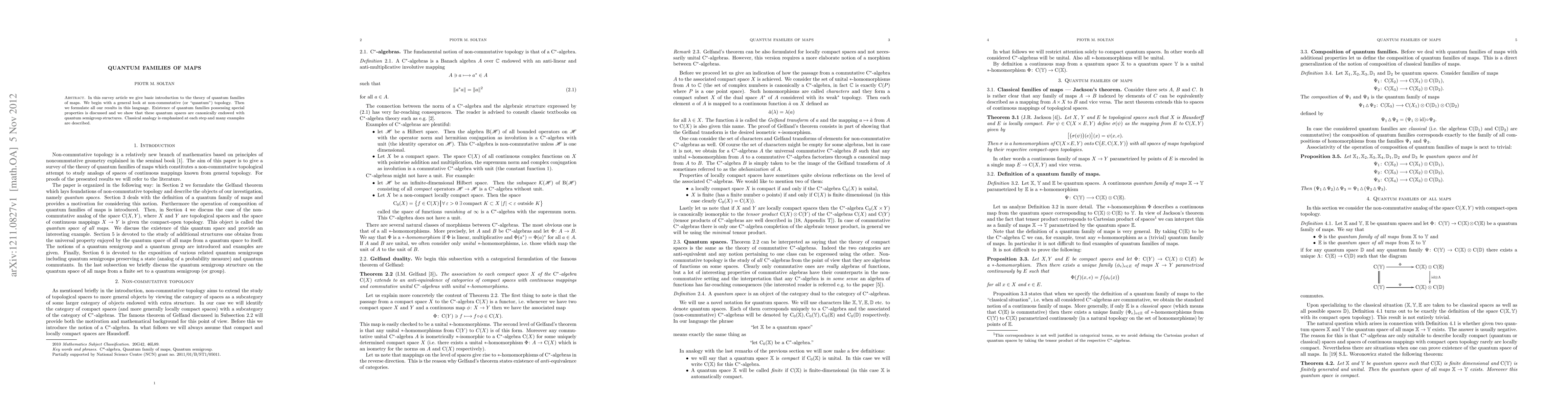 This research provides a survey on the theory of quantum families of maps, introducing concepts from non-commutative (quantum) topology and formulating results in this language.