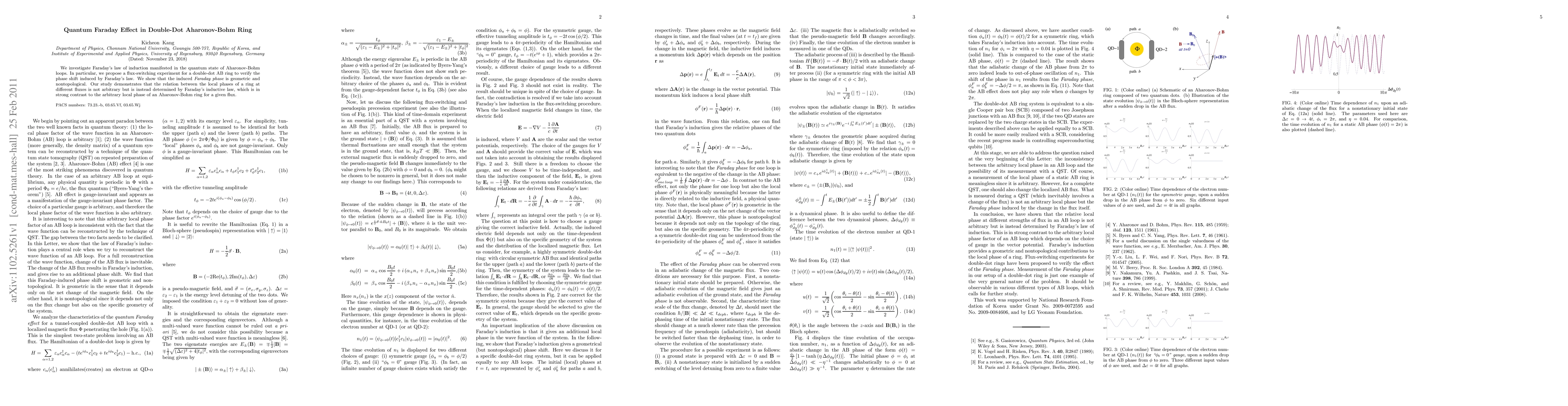 The paper presents a detailed theoretical analysis of Faraday's law of induction in quantum systems, specifically in double-dot Aharonov-Bohm rings, and proposes a flux-switching experiment to verify the induced phase shift.