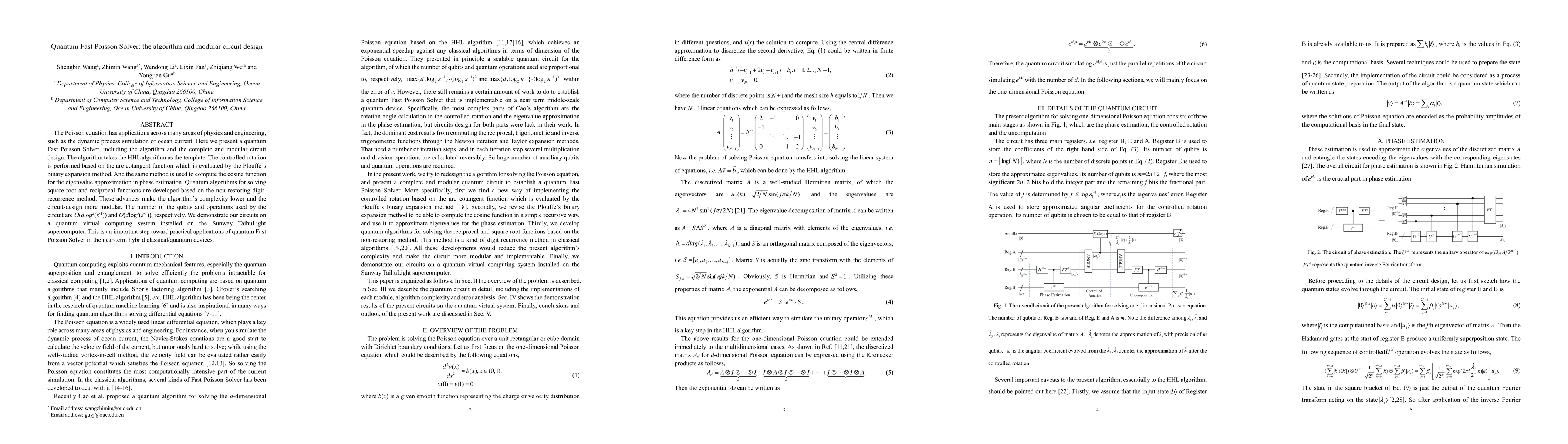 The Poisson equation has applications across many areas of physics and engineering, such as the dynamic process simulation of ocean current. Here we present a quantum Fast Poisson Solver, including the algorithm and the complete and modular circuit design. The algorithm takes the HHL algorithm as the template. The controlled rotation is performed based on the arc cotangent function which is evaluated by the Plouffe's binary expansion method. And the same method is used to compute the cosine function for the eigenvalue approximation in phase estimation. Quantum algorithms for solving square root and reciprocal functions are developed based on the non-restoring digit-recurrence method. These advances make the algorithm's complexity lower and the circuit-design more modular. The number of the qubits and operations used by the circuit are O(dlog2({\epsilon}-1)) and O(dlog3({\epsilon}-1)), respectively. We demonstrate our circuits on a quantum virtual computing system installed on the Sunway TaihuLight supercomputer. This is an important step toward practical applications of quantum Fast Poisson Solver in the near-term hybrid classical/quantum devices.