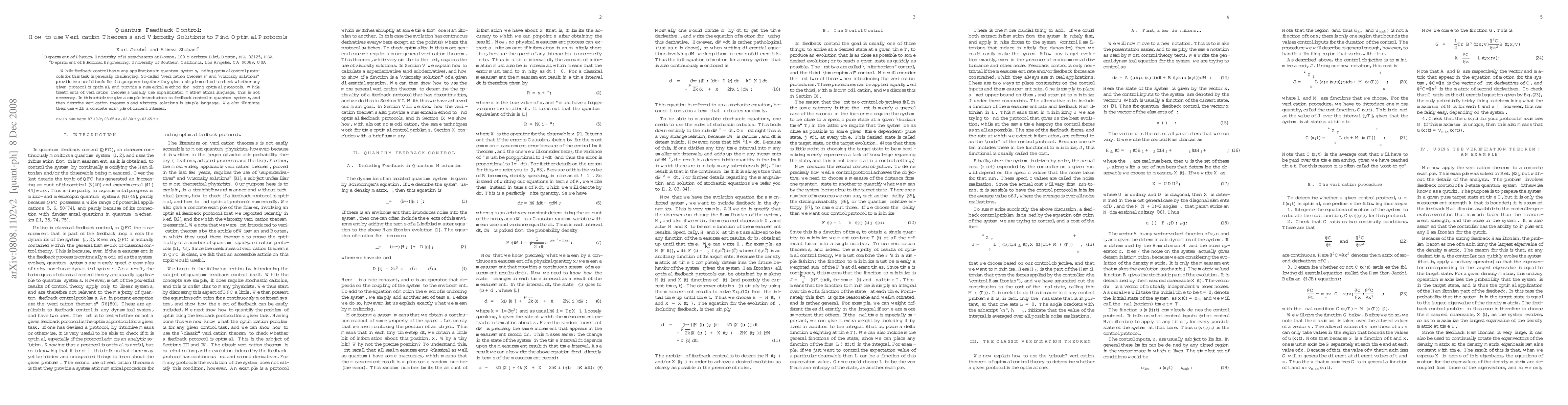 This paper introduces a straightforward method for finding optimal quantum feedback control protocols using verification theorems and viscosity solutions. It simplifies complex mathematical concepts and demonstrates their application through a practical example.