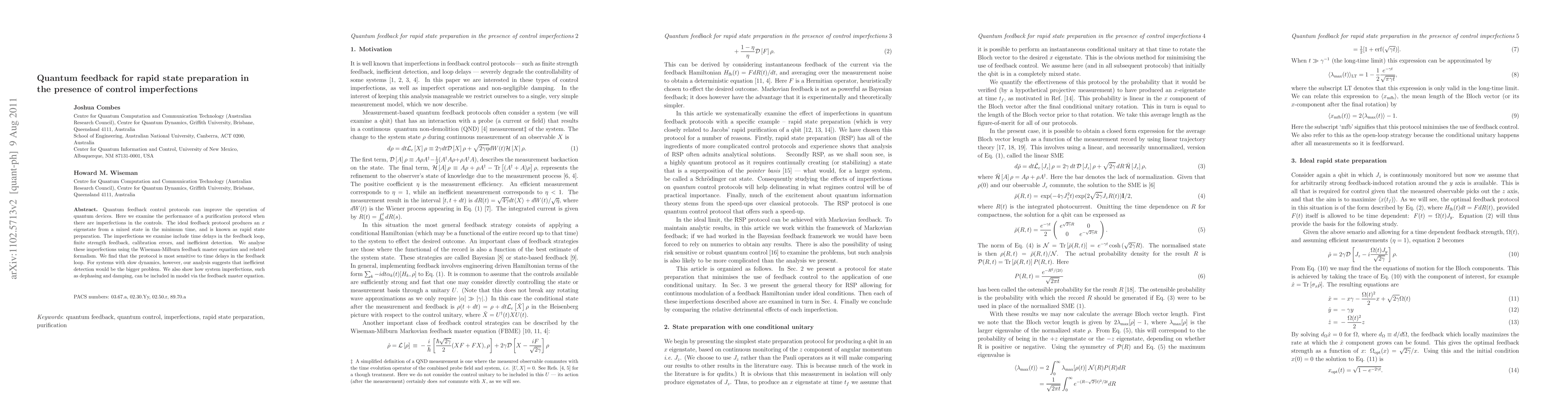This paper investigates how imperfections in quantum feedback control affect rapid state preparation protocols, finding that time delays are the most critical issue, while inefficient detection is more problematic for systems with slow dynamics. The study uses the Wiseman-Milburn feedback master equation to analyze these effects and incorporate system imperfections like dephasing and damping.