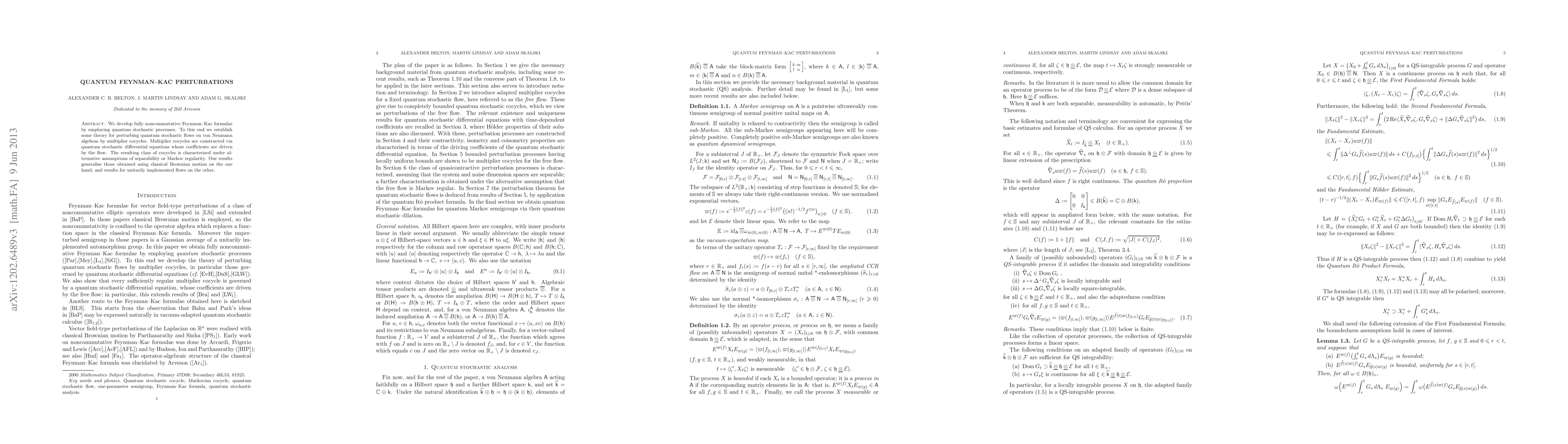 We develop fully noncommutative Feynman-Kac formulae by employing quantum stochastic processes. To this end we establish some theory for perturbing quantum stochastic flows on von Neumann algebras by multiplier cocycles. Multiplier cocycles are constructed via quantum stochastic differential equations whose coefficients are driven by the flow. The resulting class of cocycles is characterised under alternative assumptions of separability or Markov regularity. Our results generalise those obtained using classical Brownian motion on the one hand, and results for unitarily implemented flows on the other.