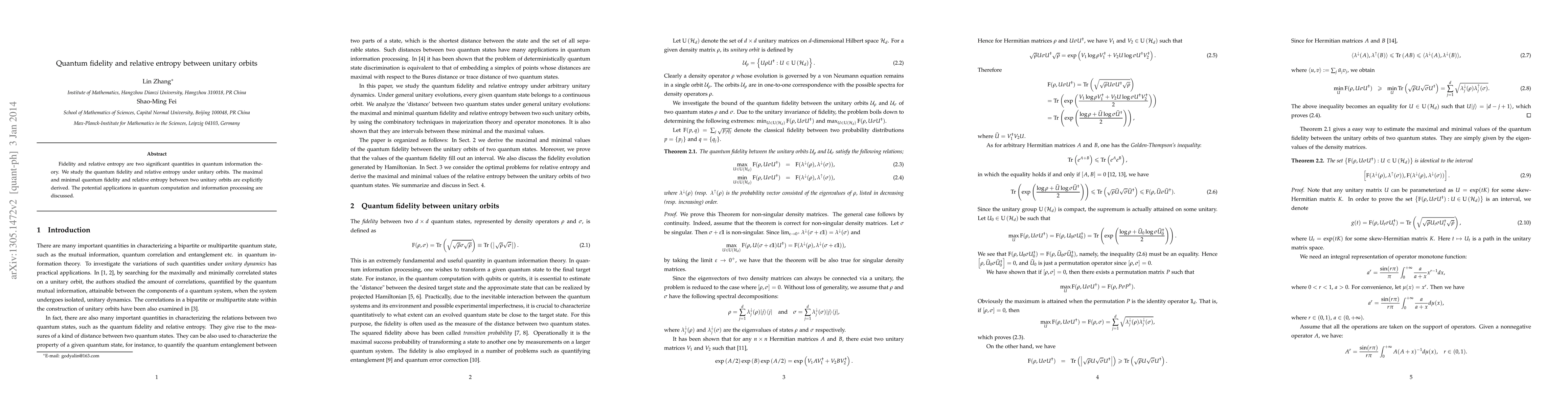 The paper presents a comprehensive analysis of quantum fidelity and relative entropy under unitary orbits, providing explicit formulas for their maximal and minimal values.