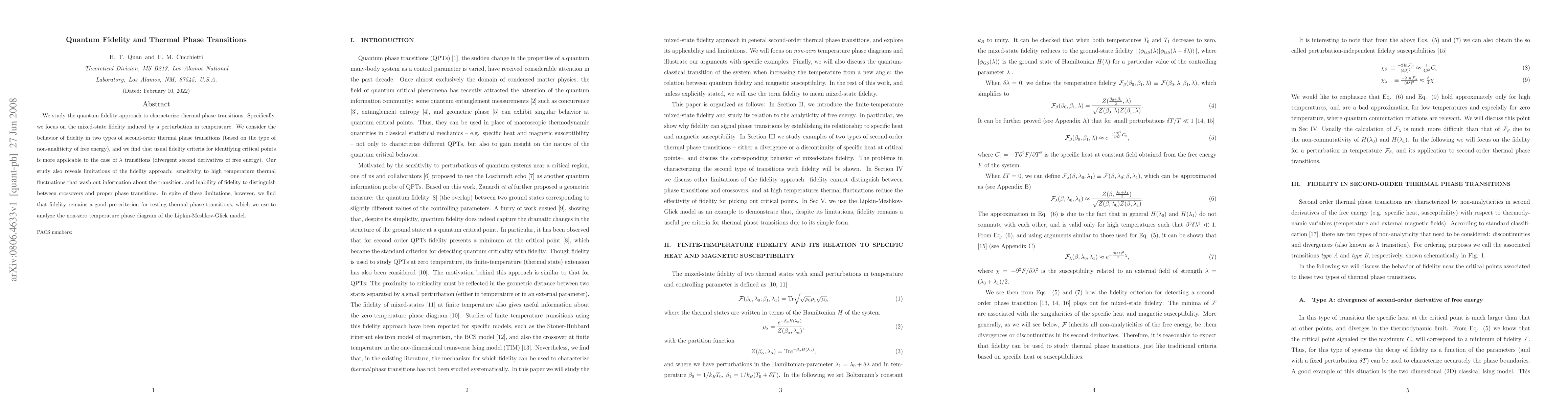 This research explores the use of quantum fidelity to characterize thermal phase transitions, finding it effective for identifying critical points in $\lambda$ transitions but limited by sensitivity to high-temperature fluctuations and inability to differentiate between crossovers and phase transitions. It concludes that fidelity serves as a useful preliminary test for thermal phase transitions, demonstrated through analysis of the Lipkin-Meshkov-Glick model.
