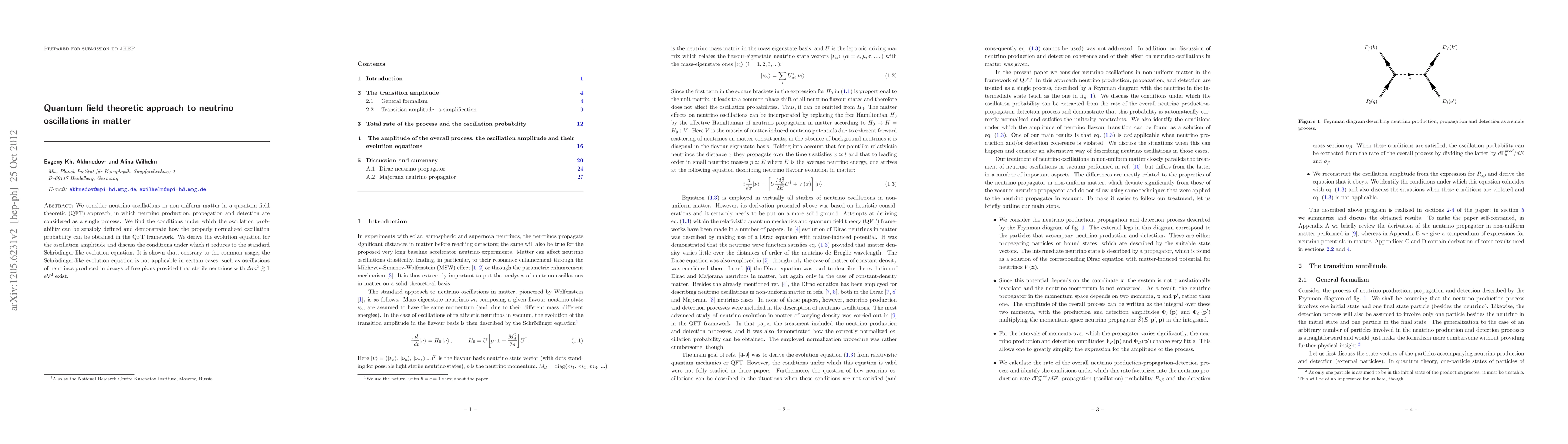 This paper employs a quantum field theoretic approach to study neutrino oscillations in non-uniform matter, deriving an evolution equation for the oscillation amplitude and demonstrating its reduction to a standard Schrödinger-like equation under certain conditions. It highlights scenarios where the Schrödinger-like equation is inapplicable, such as in the presence of sterile neutrinos with significant mass differences.
