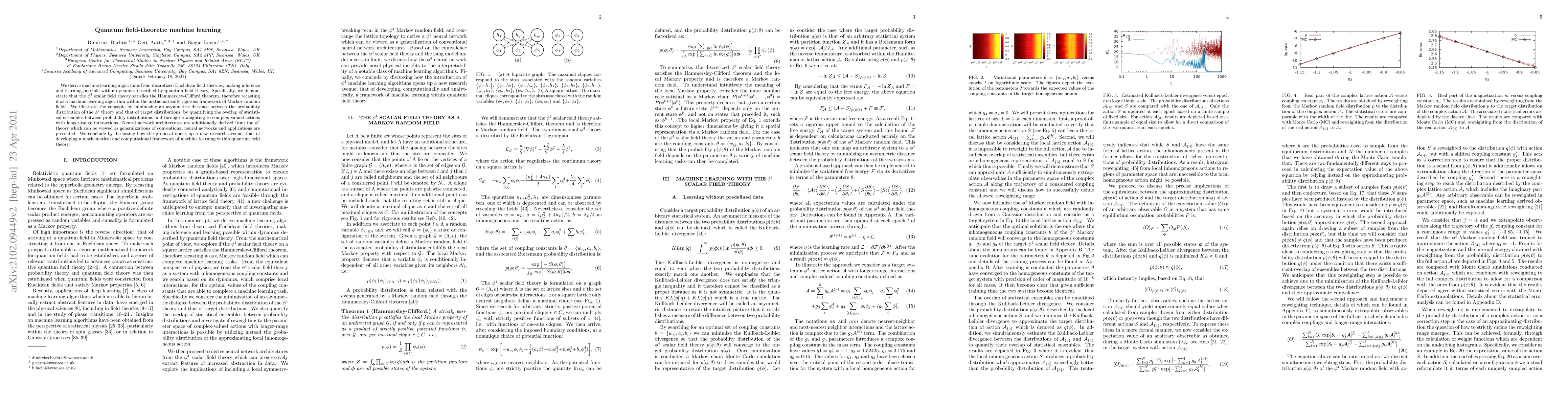 We derive machine learning algorithms from discretized Euclidean field theories, making inference and learning possible within dynamics described by quantum field theory. Specifically, we demonstrate that the $\phi^{4}$ scalar field theory satisfies the Hammersley-Clifford theorem, therefore recasting it as a machine learning algorithm within the mathematically rigorous framework of Markov random fields. We illustrate the concepts by minimizing an asymmetric distance between the probability distribution of the $\phi^{4}$ theory and that of target distributions, by quantifying the overlap of statistical ensembles between probability distributions and through reweighting to complex-valued actions with longer-range interactions. Neural network architectures are additionally derived from the $\phi^{4}$ theory which can be viewed as generalizations of conventional neural networks and applications are presented. We conclude by discussing how the proposal opens up a new research avenue, that of developing a mathematical and computational framework of machine learning within quantum field theory.