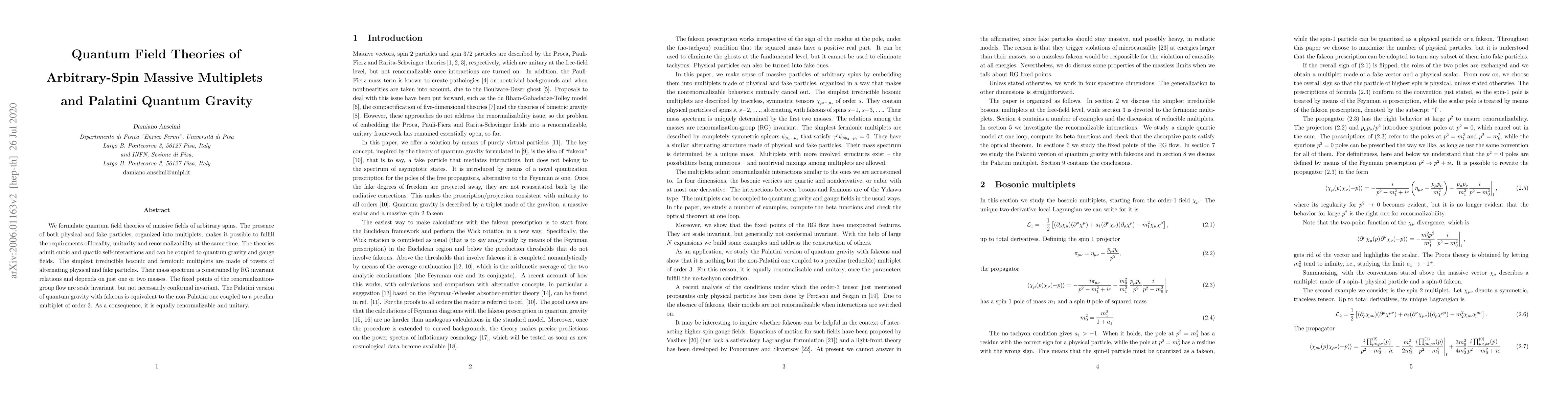 The paper presents quantum field theories for massive fields of any spin, ensuring locality, unitarity, and renormalizability through physical and fake particles in multiplets. These theories support self-interactions, quantum gravity, and gauge field couplings, with mass spectra dependent on limited parameters. The Palatini quantum gravity, equivalent to non-Palatini gravity with a unique multiplet, is equally renormalizable and unitary.