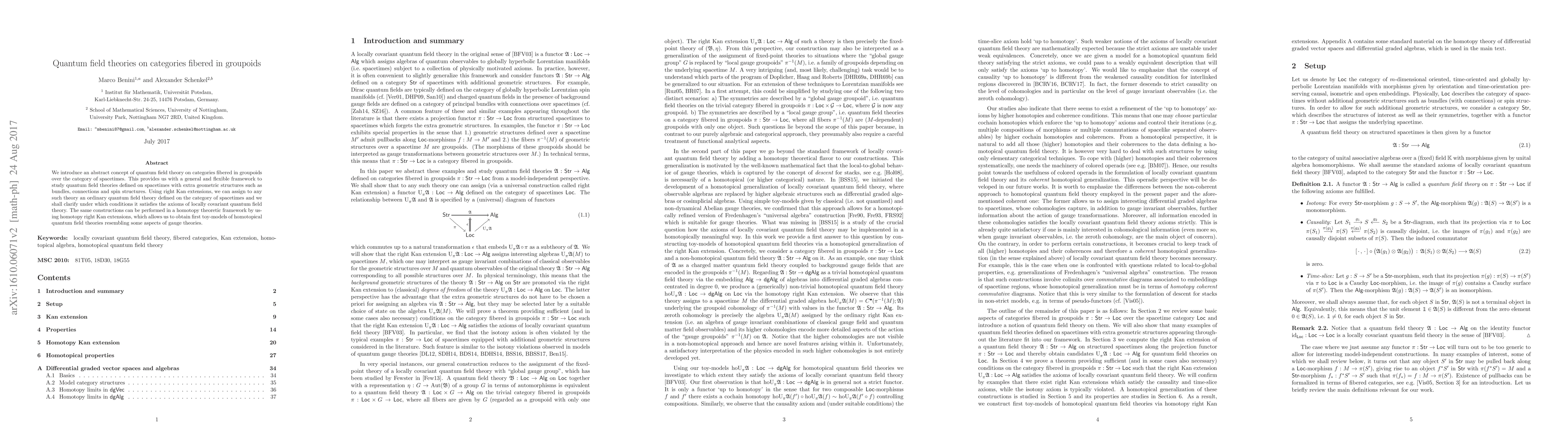 This work provides a novel approach to studying quantum field theories by generalizing the framework to include categories fibered in groupoids, which allows for the incorporation of additional geometric structures. It also introduces a homotopical perspective, potentially capturing more detailed aspects of gauge theories that are not visible at the level of gauge-invariant observables.