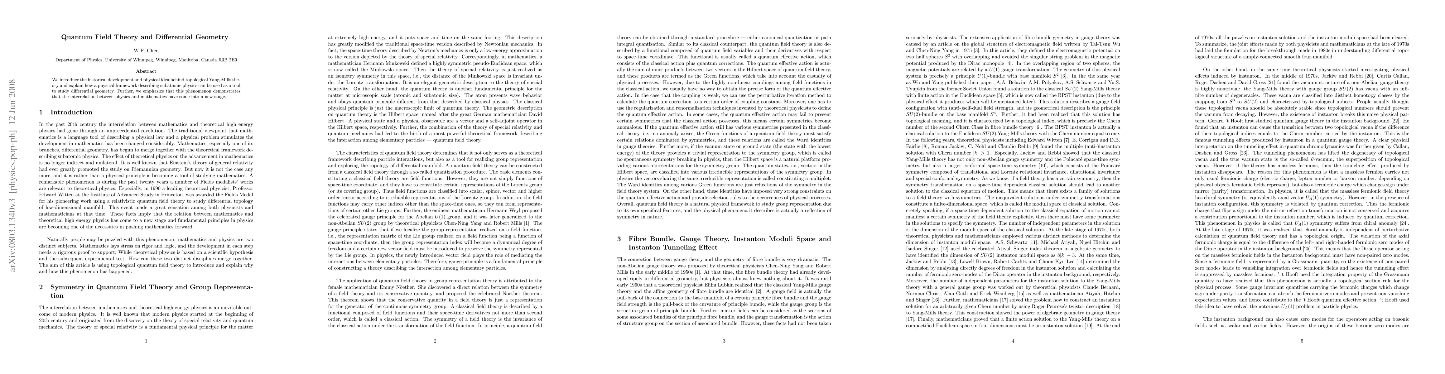We introduce the historical development and physical idea behind topological Yang-Mills theory and explain how a physical framework describing subatomic physics can be used as a tool to study differential geometry. Further, we emphasize that this phenomenon demonstrates that the interrelation between physics and mathematics have come into a new stage.