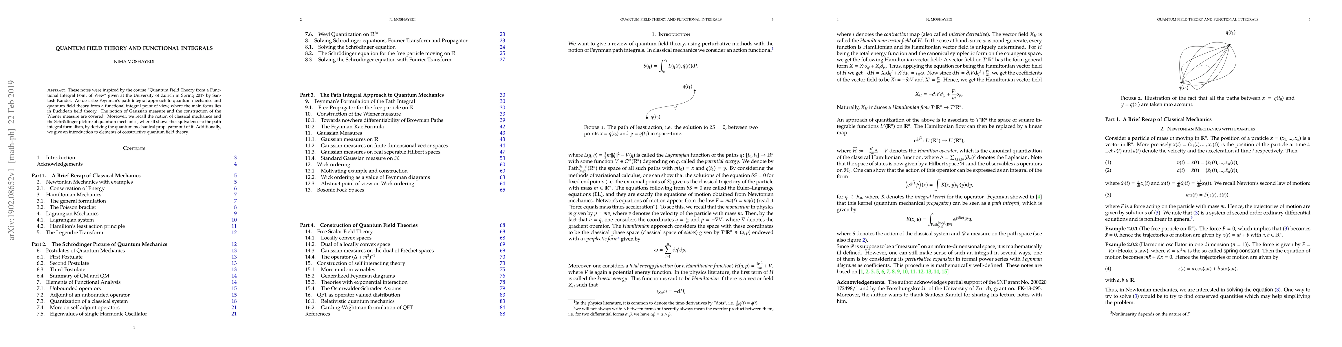 This paper explores Feynman's path integral approach to quantum mechanics and quantum field theory, emphasizing Euclidean field theory and the construction of the Wiener measure. It also reviews classical mechanics and the Schrödinger picture, demonstrating their equivalence to the path integral formalism.