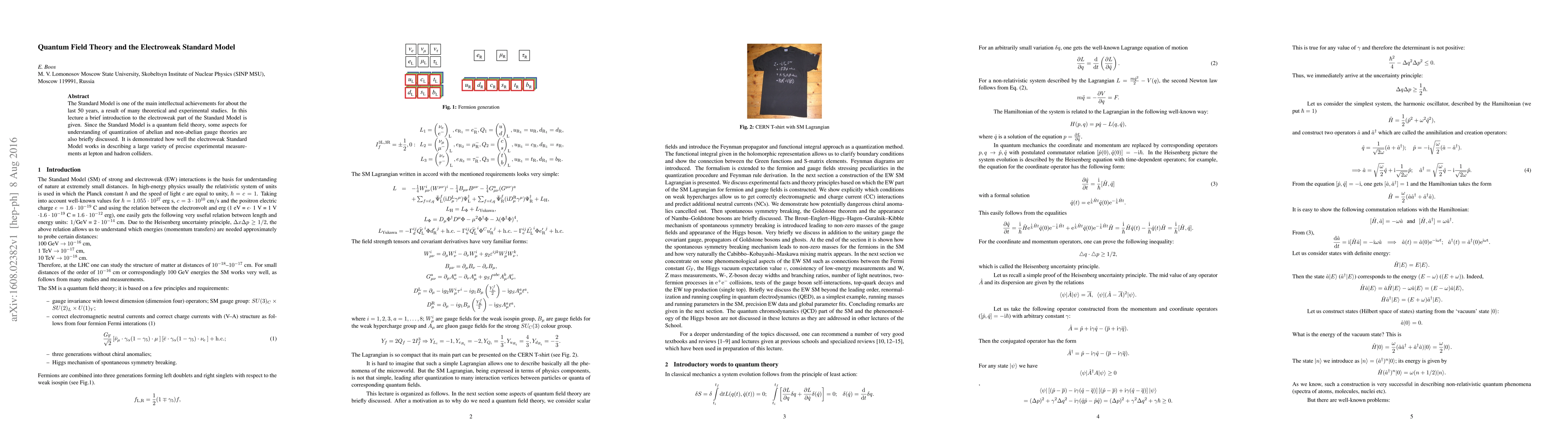 This paper provides an introduction to the electroweak sector of the Standard Model, emphasizing its role in quantum field theory, and discusses the quantization of both abelian and non-abelian gauge theories. It highlights the model's successful alignment with experimental data from lepton and hadron colliders.