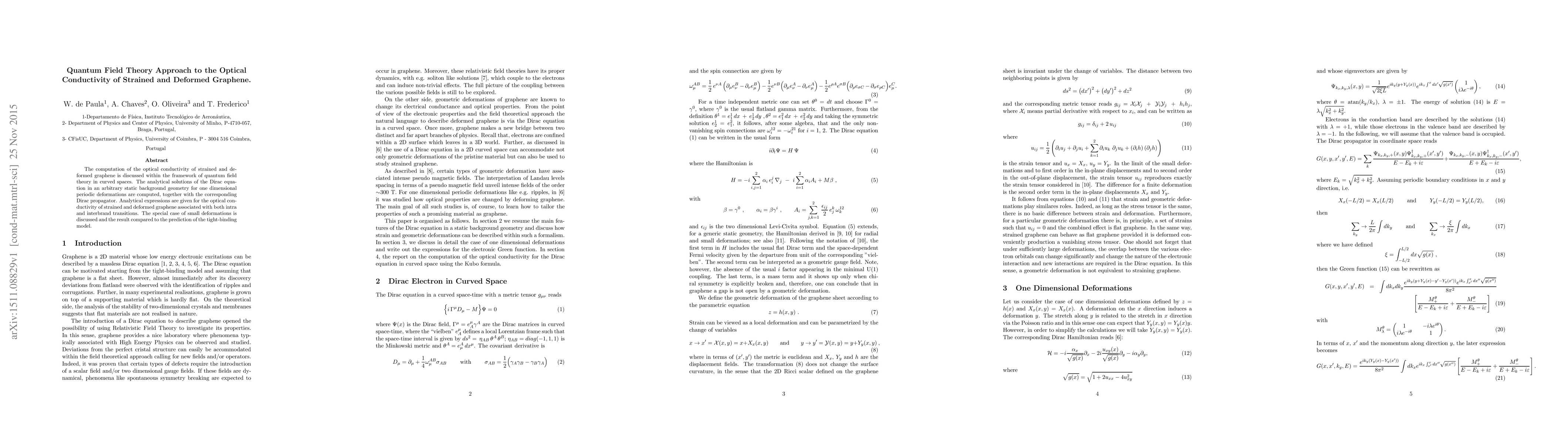This paper uses quantum field theory in curved spaces to compute the optical conductivity of strained and deformed graphene, providing analytical solutions for the Dirac equation and the corresponding Dirac propagator. The study also compares the results for small deformations to predictions from the tight-binding model.