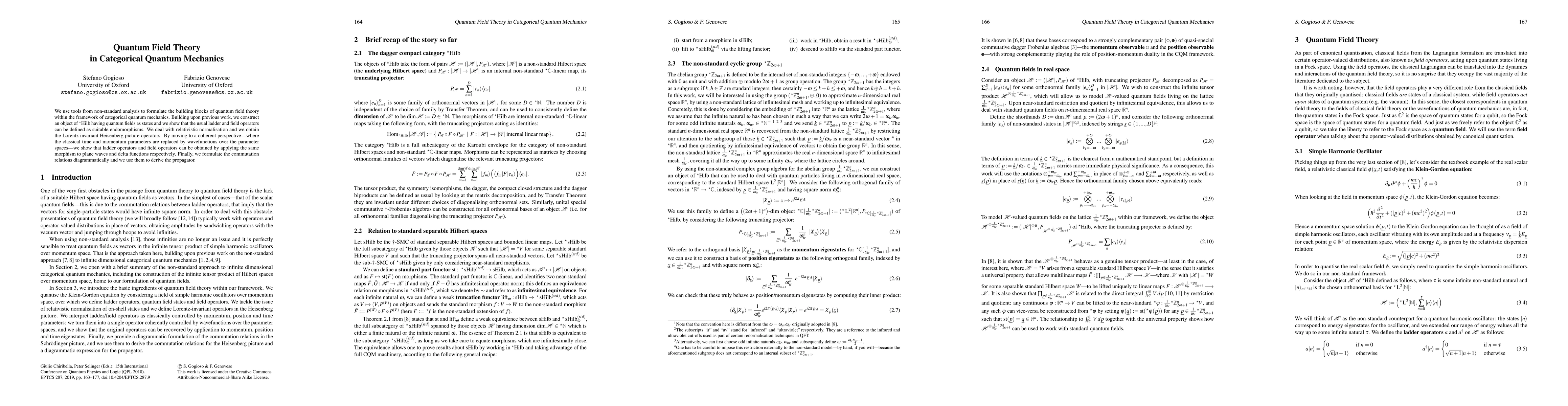 This paper formulates quantum field theory using categorical quantum mechanics and non-standard analysis, constructing *Hilb objects with quantum fields as states and defining relativistic ladder and field operators. It derives the propagator through diagrammatic commutation relations.