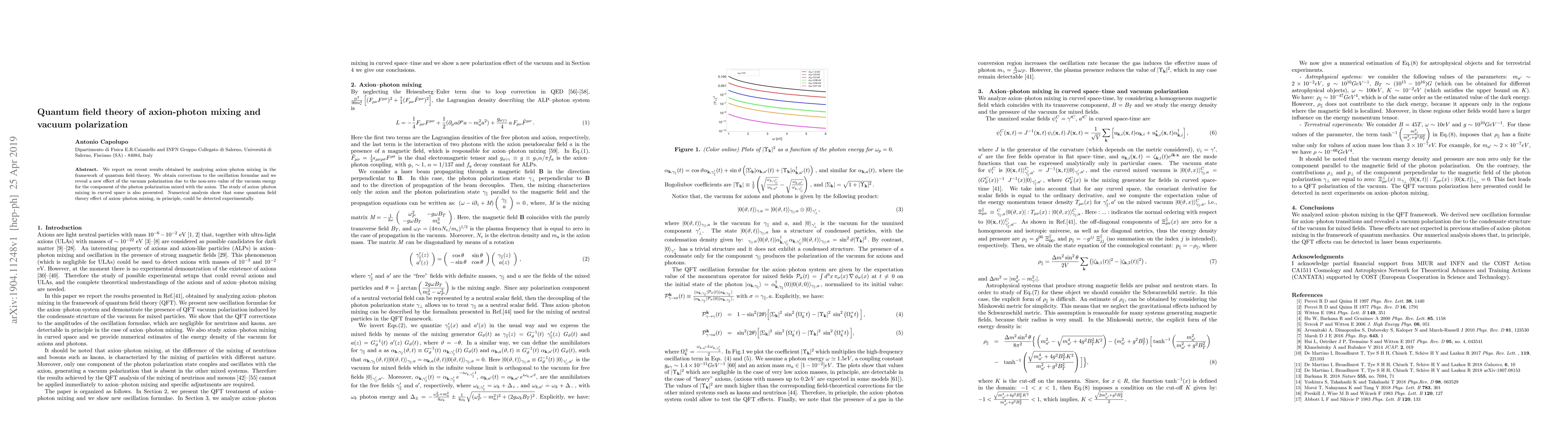 The paper presents a quantum field theory approach to axion-photon mixing, deriving new oscillation formulae and uncovering vacuum polarization effects due to mixed field condensates.