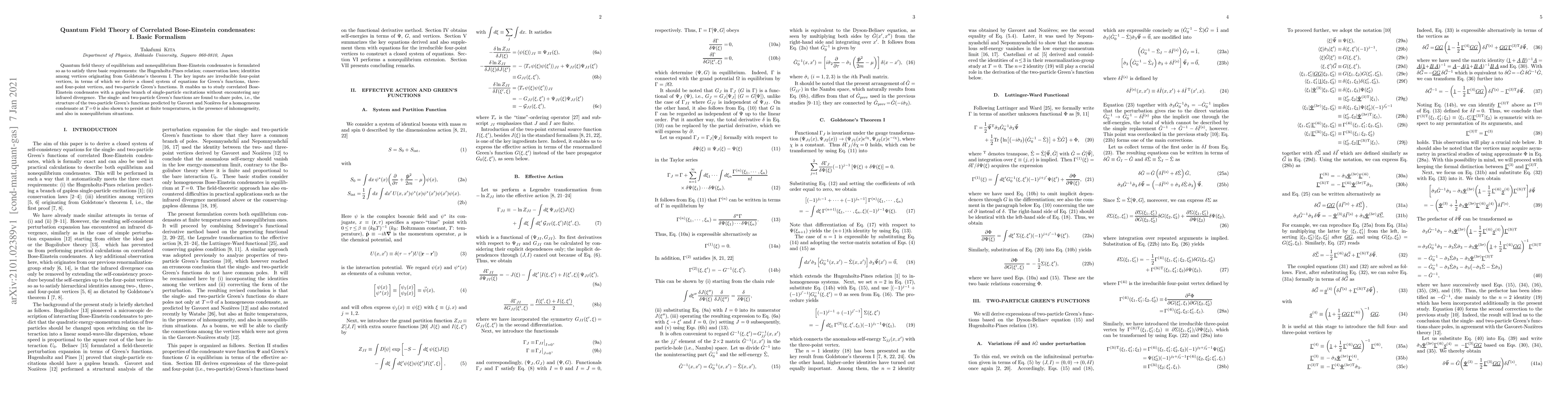 Quantum field theory of equilibrium and nonequilibrium Bose-Einstein condensates is formulated so as to satisfy three basic requirements: the Hugenholtz-Pines relation; conservation laws; identities among vertices originating from Goldstone's theorem I. The key inputs are irreducible four-point vertices, in terms of which we derive a closed system of equations for Green's functions, three- and four-point vertices, and two-particle Green's functions. It enables us to study correlated Bose-Einstein condensates with a gapless branch of single-particle excitations without encountering any infrared divergence. The single- and two-particle Green's functions are found to share poles, i.e., the structure of the two-particle Green's functions predicted by Gavoret and Nozi\`eres for a homogeneous condensate at $T=0$ is also shown to persist at finite temperatures, in the presence of inhomogeneity, and also in nonequilibrium situations.