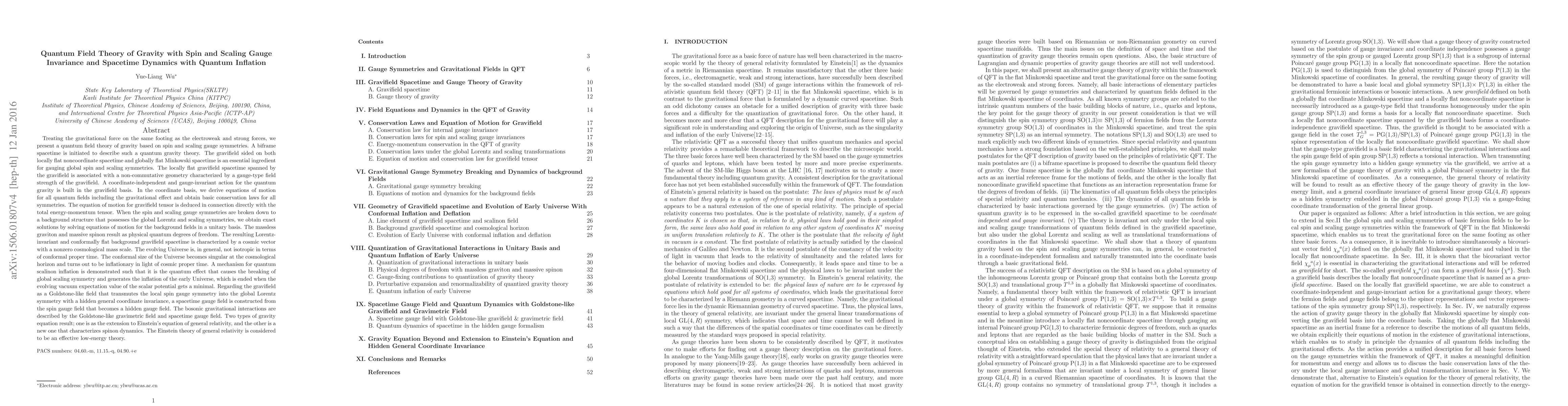 Treating the gravitational force on the same footing as the electroweak and strong forces, we present a quantum field theory of gravity based on spin and scaling gauge symmetries. A biframe spacetime is initiated to describe such a quantum gravity theory. The gravifield sided on both locally flat noncoordinate spacetime and globally flat Minkowski spacetime is an essential ingredient for gauging global spin and scaling symmetries. The locally flat gravifield spacetime spanned by the gravifield is associated with a noncommutative geometry characterized by a gauge-type field strength of the gravifield. A coordinate-independent and gauge-invariant action for the quantum gravity is built in the gravifield basis. In the coordinate basis, we derive equations of motion for all quantum fields including the gravitational effect and obtain basic conservation laws for all symmetries. The equation of motion for gravifield tensor is deduced in connection directly with the total energy-momentum tensor. When the spin and scaling gauge symmetries are broken down to a background structure that possesses the global Lorentz and scaling symmetries, we obtain exact solutions by solving equations of motion for the background fields in a unitary basis. The massless graviton and massive spinon result as physical quantum degrees of freedom. The resulting Lorentz-invariant and conformally flat background gravifield space-time is characterized by a cosmic vector with a nonzero cosmological mass scale. The conformal size of the Universe becomes singular at the cosmological horizon and turns out to be inflationary. A mechanism for quantum inflation is demonstrated to generate the inflation of the early Universe. Two types of gravity equation result, one is as the extension to Einstein's equation of general relativity, and the other is a new one that characterizes spinon dynamics.