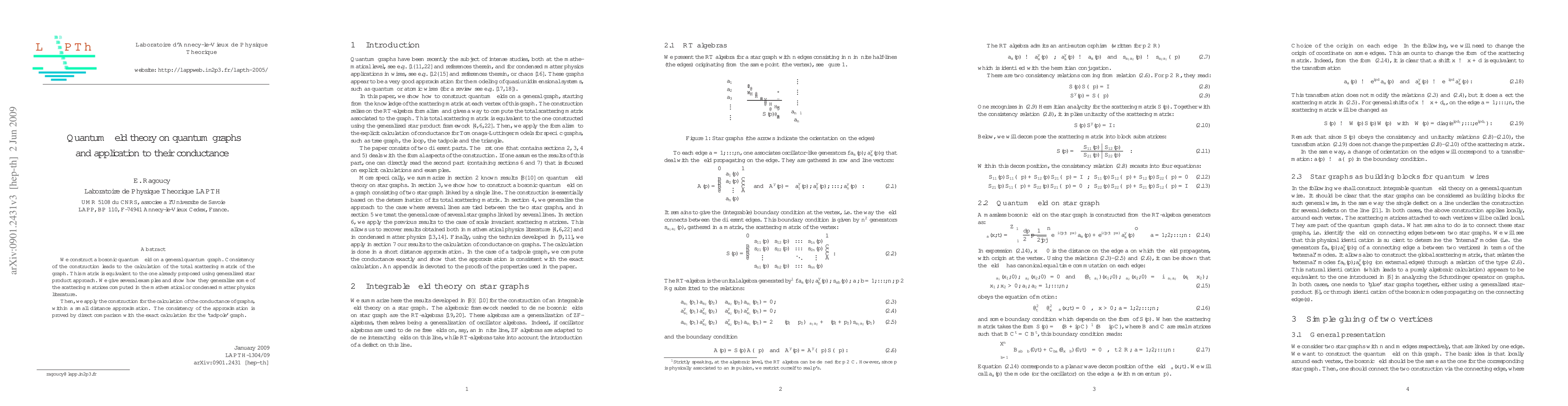 The paper presents a method to construct a bosonic quantum field theory on general quantum graphs, verifying its consistency with existing scattering matrix calculations. This approach is then applied to calculate the conductance of graphs, with the approximation's validity confirmed through comparison with exact calculations for a 'tadpole' graph.