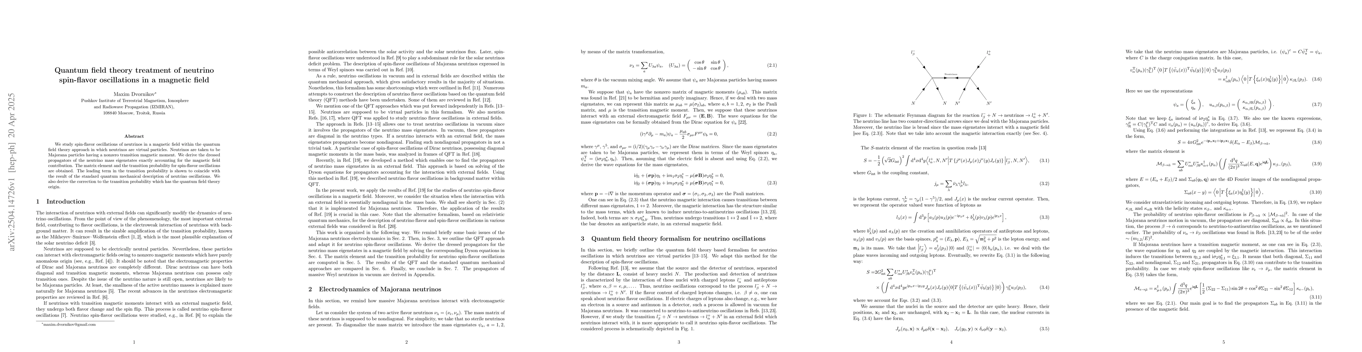 The paper presents a detailed derivation of dressed propagators for neutrino mass eigenstates in a magnetic field within the QFT framework, including both diagonal and non-diagonal cases.