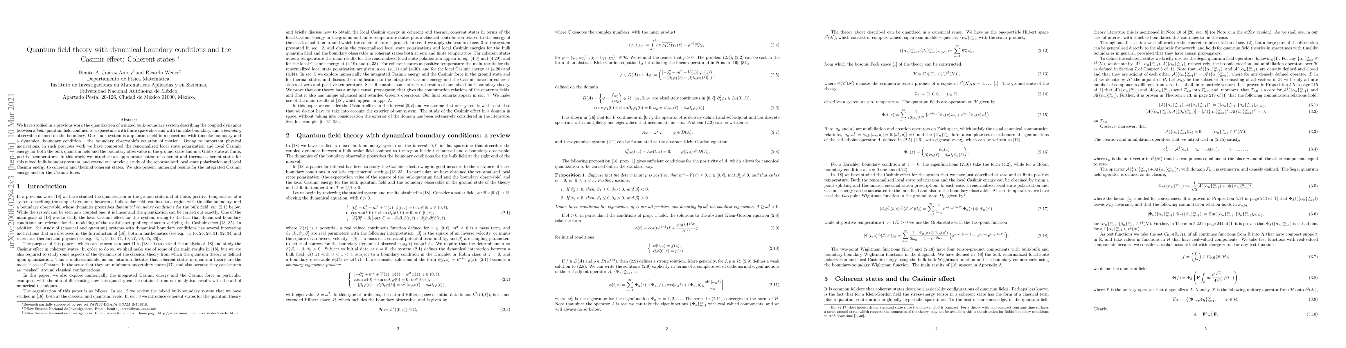 This paper extends previous work on the quantization of a quantum field with dynamical boundary conditions, introducing coherent and thermal coherent states for a mixed bulk-boundary system. It computes the renormalized local state polarization and local Casimir energy for these states, alongside numerical results for integrated Casimir energy and Casimir force.