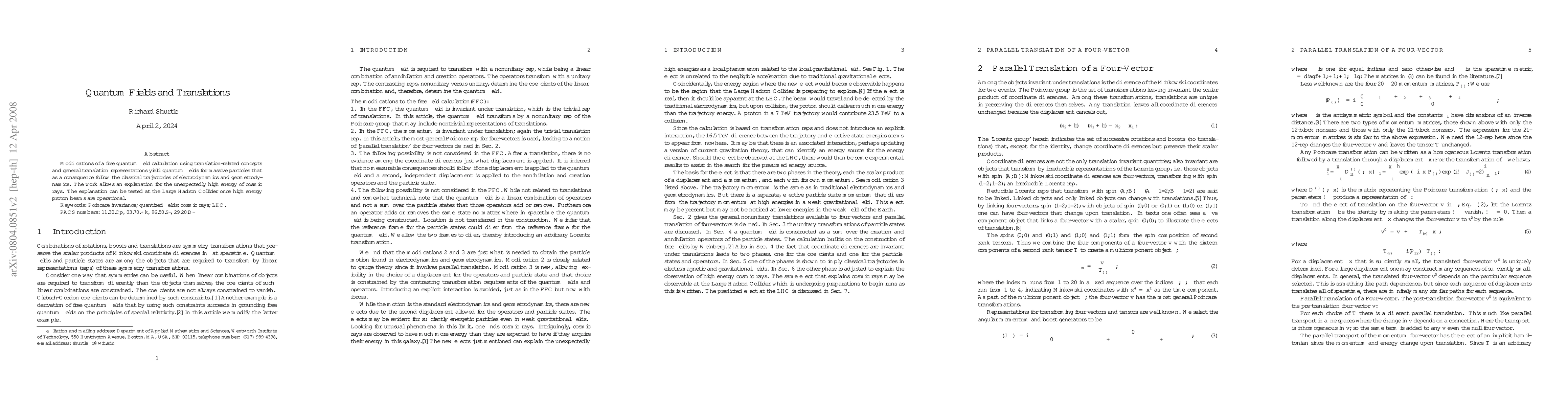 Modifications of a free quantum field calculation using translation-related concepts and general translation representations yield quantum fields for massive particles that as a consequence follow the classical trajectories of electrodynamics and geometrodynamics. The work allows an explanation for the unexpectedly high energy of cosmic rays. The explanation can be tested at the Large Hadron Collider once high energy proton beams are operational.