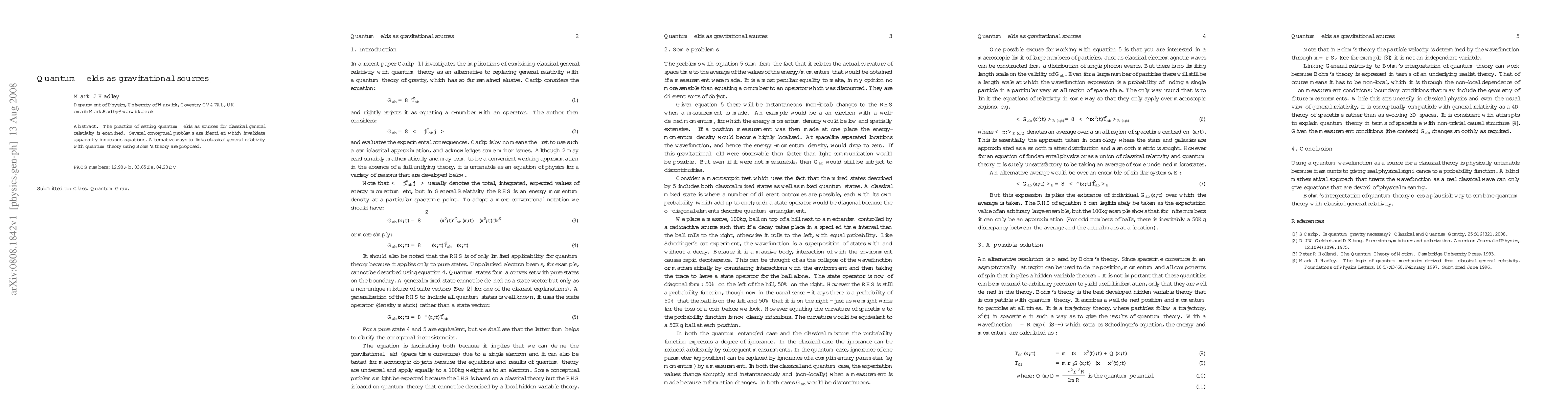 The practice of setting quantum fields as sources for classical general relativity is examined. Several conceptual problems are identified which invalidate apparently innocuous equations. Alternative ways to links classical general relativity with quantum theory using Bohm's theory are proposed.