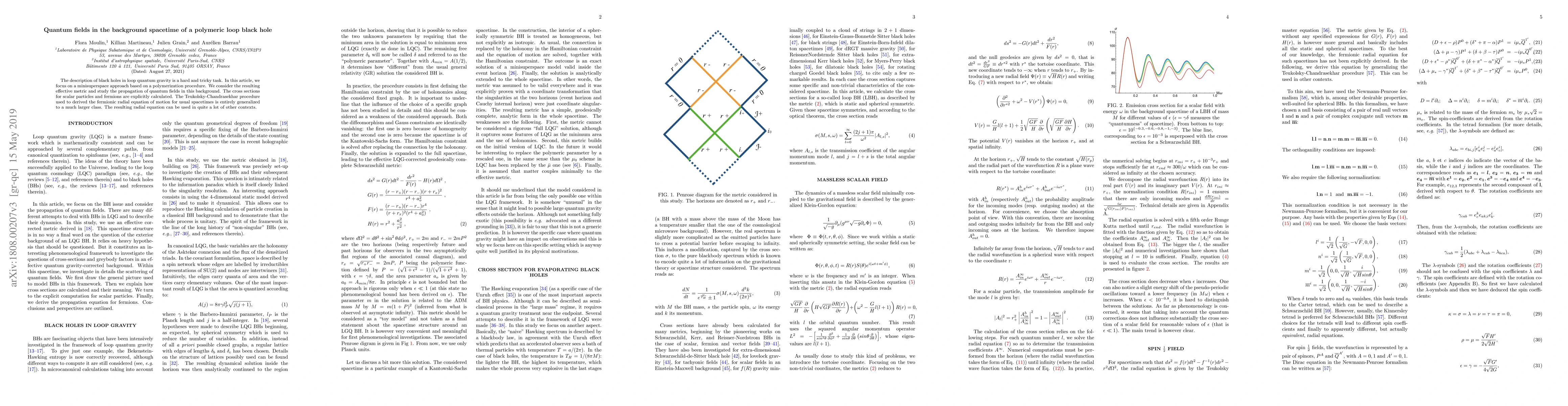 The description of black holes in loop quantum gravity is a hard and tricky task. In this article, we focus on a minisuperspace approach based on a polymerization procedure. We consider the resulting effective metric and study the propagation of quantum fields in this background. The cross sections for scalar particles and fermions are explicitly calculated. The Teukolsky-Chandrasekhar procedure used to derived the fermionic radial equation of motion for usual spacetimes is entirely generalized to a much larger class. The resulting radial equation can be used in quite a lot of other contexts.