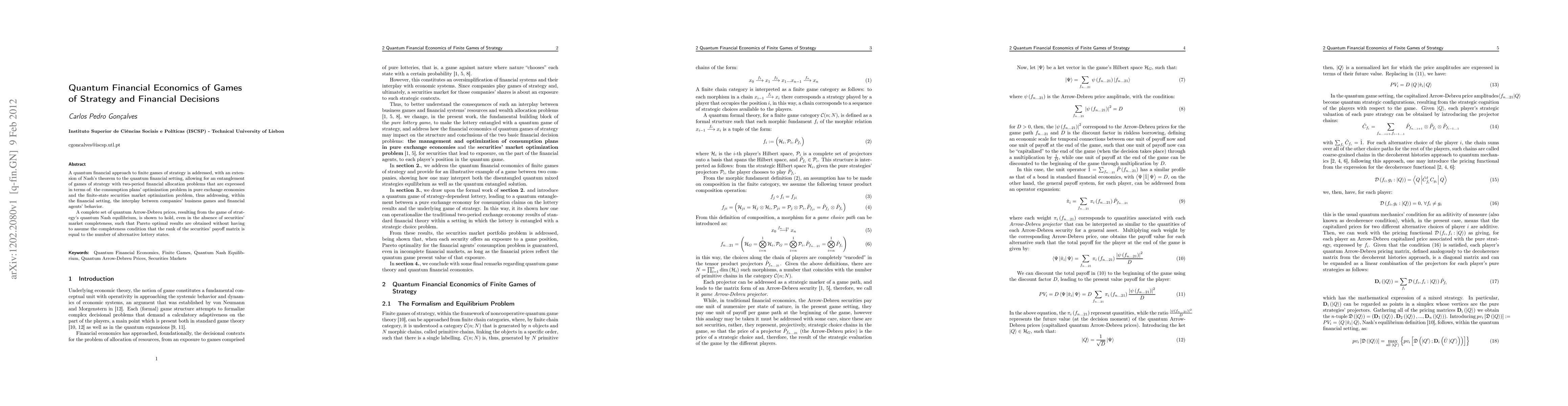This paper extends Nash's theorem to a quantum financial setting, integrating games of strategy with two-period financial allocation problems. It demonstrates that quantum Arrow-Debreu prices can achieve Pareto optimal outcomes even when securities markets are incomplete, thus linking corporate strategy with financial agent behavior.