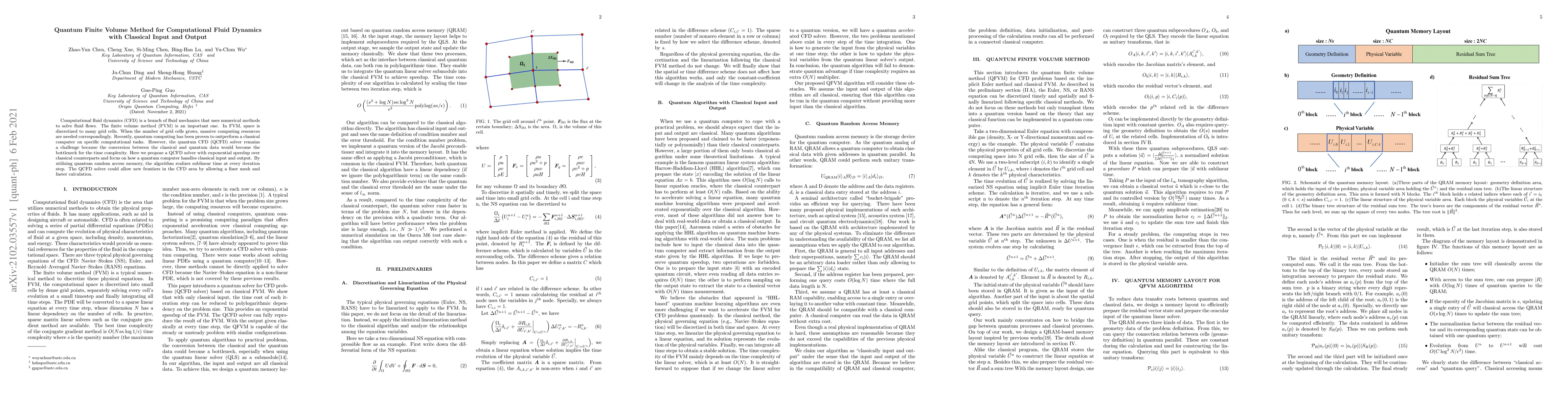This paper proposes a quantum finite volume method for computational fluid dynamics (CFD) that aims to achieve exponential speedup over classical methods. The approach leverages quantum random access memory to handle classical input and output efficiently, enabling sublinear time complexity per iteration and potentially allowing for more detailed simulations.