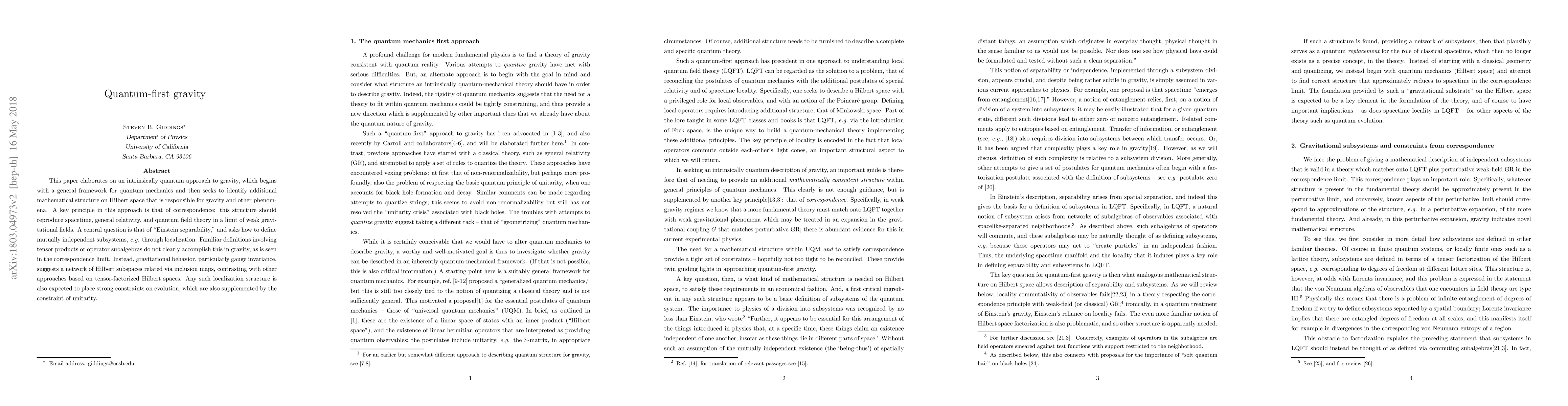 This paper elaborates on an intrinsically quantum approach to gravity, which begins with a general framework for quantum mechanics and then seeks to identify additional mathematical structure on Hilbert space that is responsible for gravity and other phenomena. A key principle in this approach is that of correspondence: this structure should reproduce spacetime, general relativity, and quantum field theory in a limit of weak gravitational fields. A central question is that of "Einstein separability," and asks how to define mutually independent subsystems, e.g. through localization. Familiar definitions involving tensor products or operator subalgebras do not clearly accomplish this in gravity, as is seen in the correspondence limit. Instead, gravitational behavior, particularly gauge invariance, suggests a network of Hilbert subspaces related via inclusion maps, contrasting with other approaches based on tensor-factorized Hilbert spaces. Any such localization structure is also expected to place strong constraints on evolution, which are also supplemented by the constraint of unitarity.