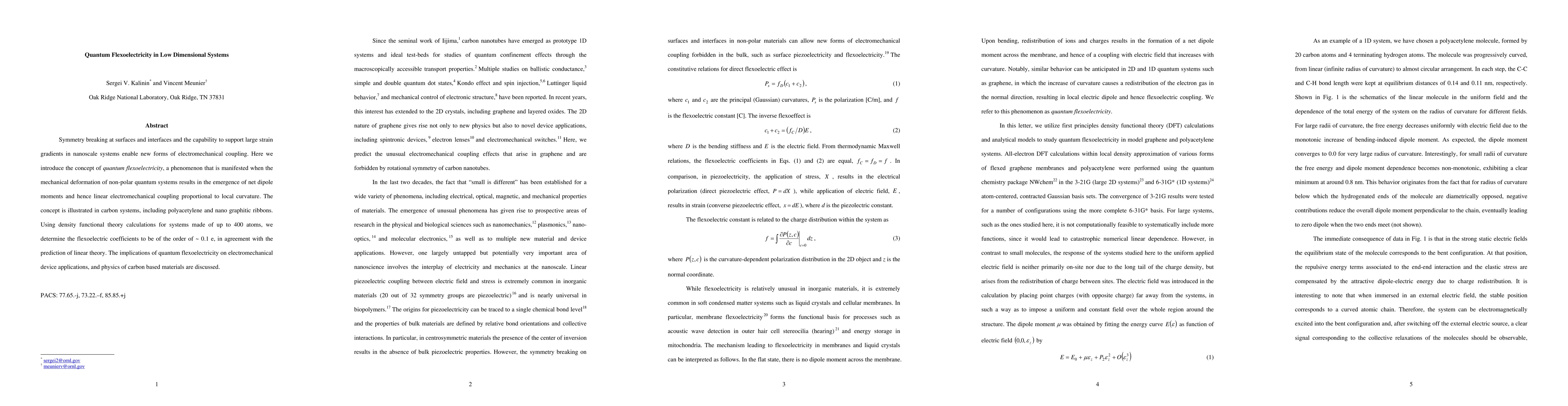 Researchers introduce quantum flexoelectricity, a phenomenon where mechanical deformation of non-polar systems creates net dipole moments, enabling linear electromechanical coupling in nanoscale systems. They calculate flexoelectric coefficients for carbon-based materials, predicting potential applications in electromechanical devices.